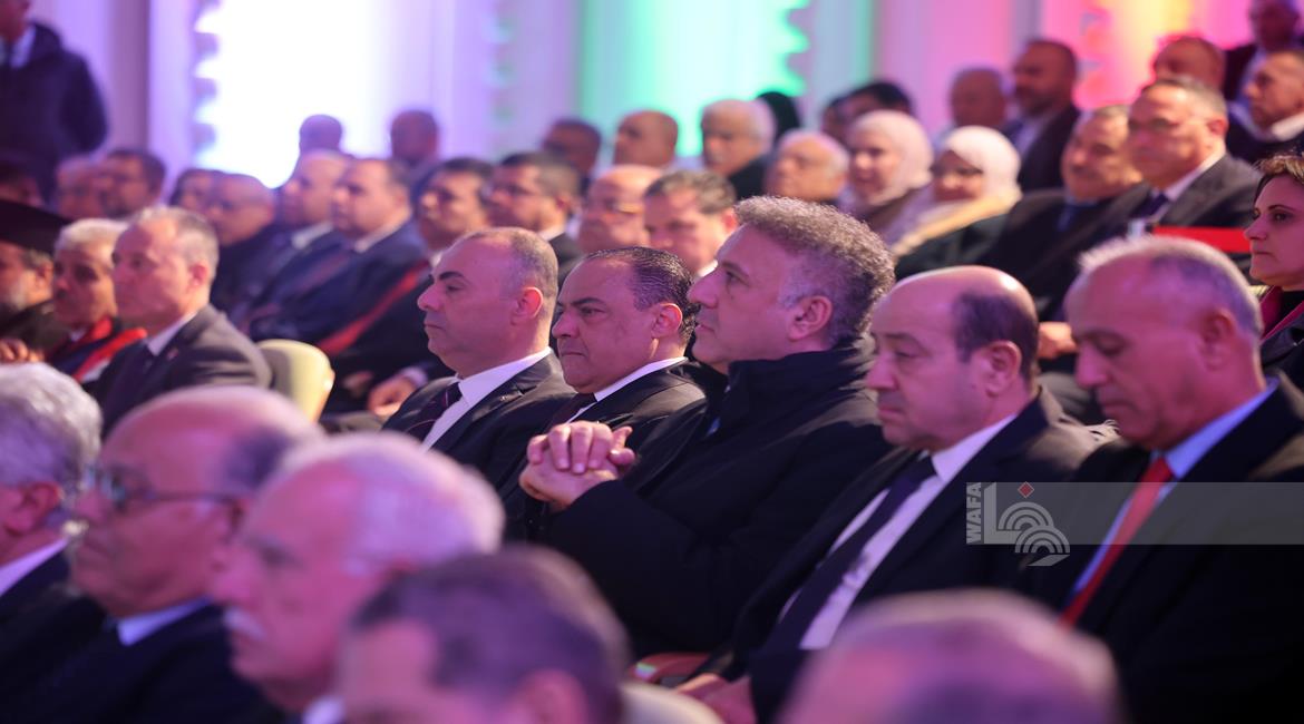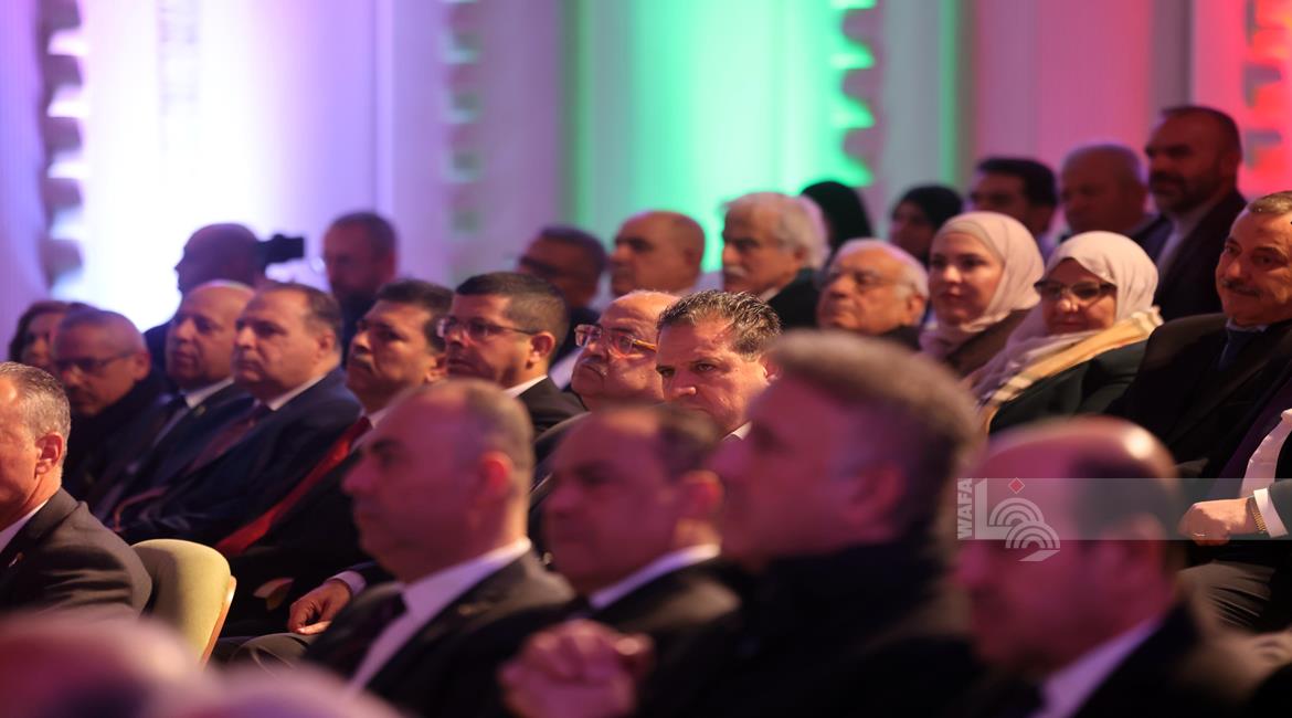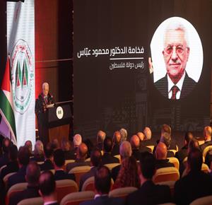 الرئيس محمود عباس، خلال ترؤسه الجلسة الافتتاحية للدورة الثالثة عشر للمجلس الثوري لحركة "فتح"، "دورة القادة الوطنيين محمد الحوراني، أسامة النجار، الحرية للقائد مروان البرغوثي ولكافة الأسرى"