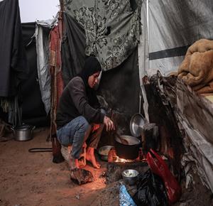غزة - مشاهد لحياة النازحين في خيام مؤقتة بين الأنقاض في منطقة مخيم البريج وسط قطاع غزة