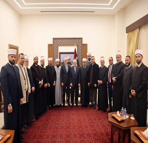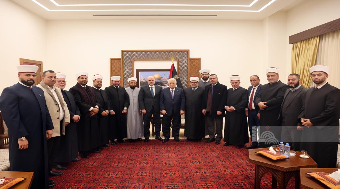رام الله - الرئيس محمود عباس خلال لقائه رجال الدين الإسلامي وممثلي القضاء الشرعي ووزارة الأوقاف بمناسبة ذكرى الإسراء والمعراج.
