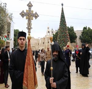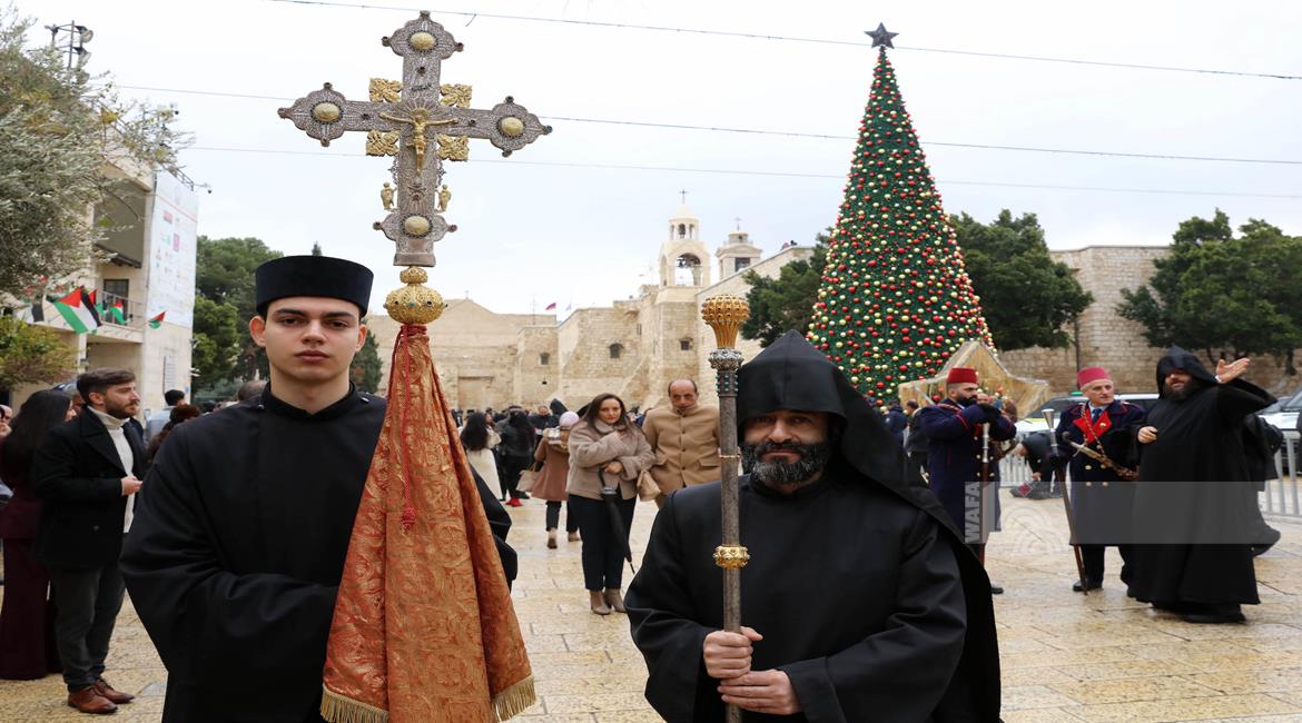 بيت لحم - وصول موكب نائب بطريرك الأرمن إلى بيت لحم لترؤس قداس منتصف الليل لعيد الميلاد المجيد والغطاس حسب تقويم الكنيسة الأرمنية