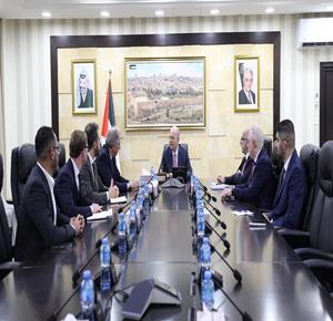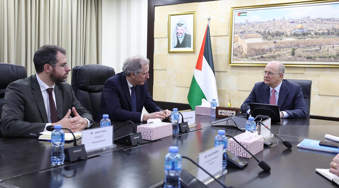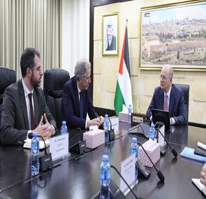 رام الله - رئيس الوزراء محمد مصطفى يستقبل المبعوث الأوروبي لعملية السلام في الشرق الأوسط كريستوف بيجو