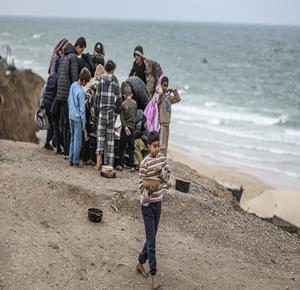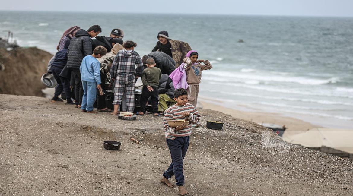شاطئ البحر هو الملاذ الوحيد للنازحين للهروب من مشاهد الدمار