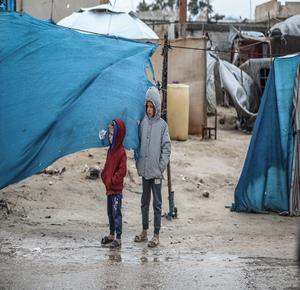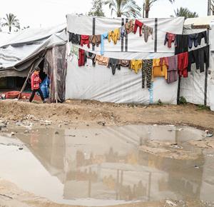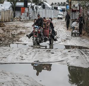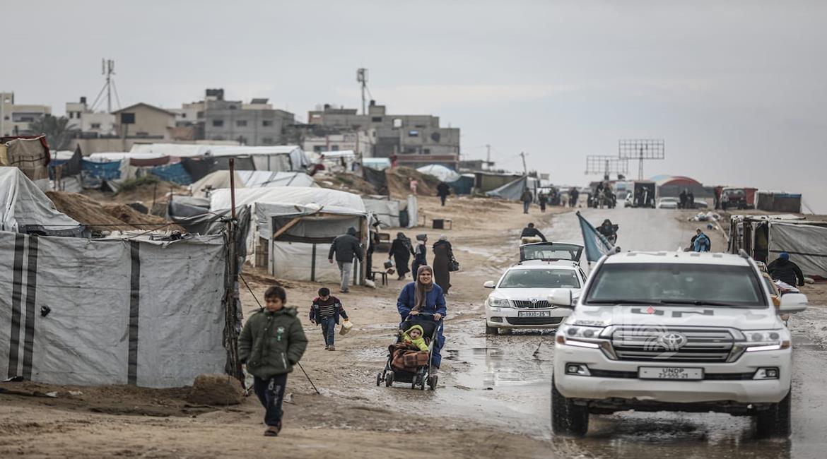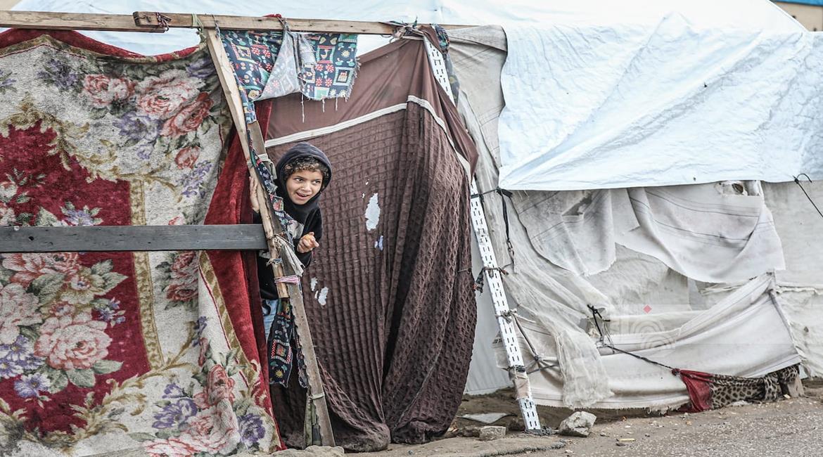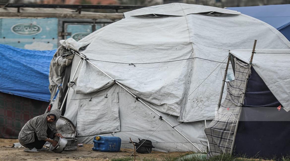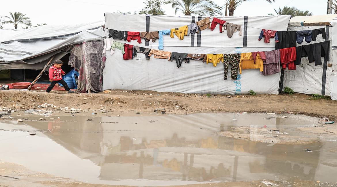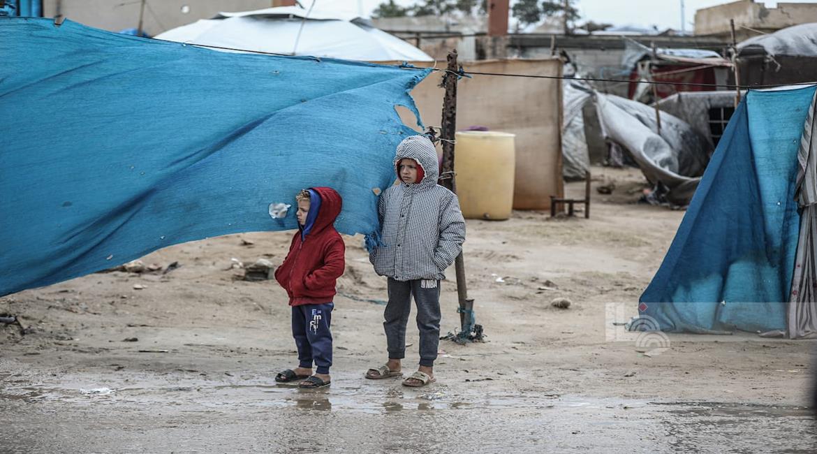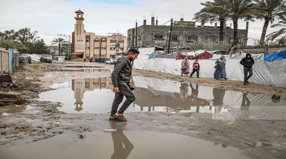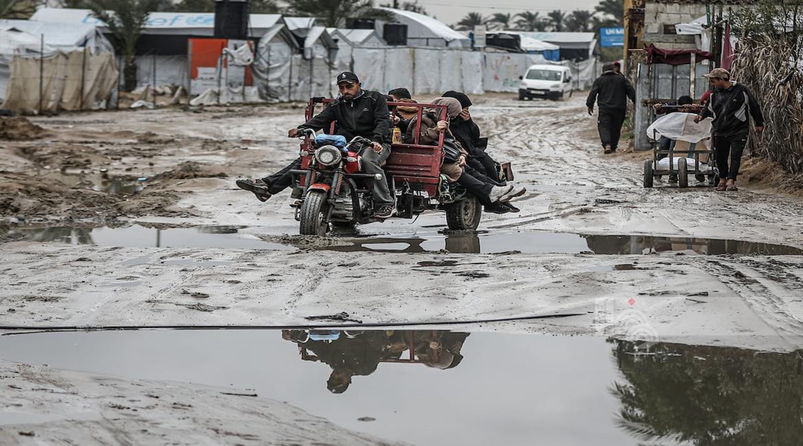 غزة - نازحون يواصلون حياتهم اليومية وسط الدمار والبرد القارس في خيام مهترئة في مخيم الزوايدة