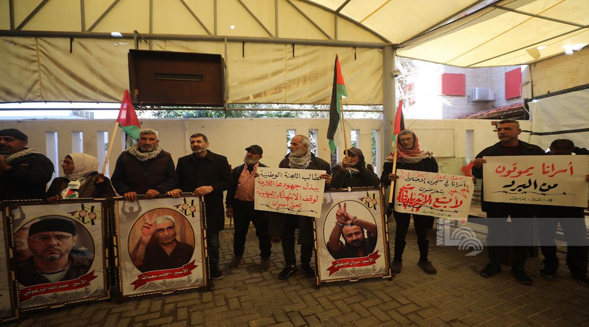 وقفة أمام مقر الصليب الأحمر في مدينة غزة للمطالبة بالإفراج عن الأسرى من سجون الاحتلال الإسرائيلي