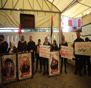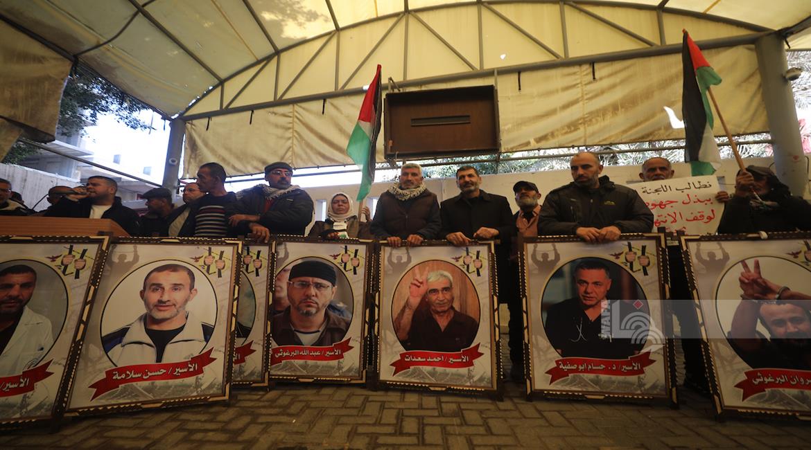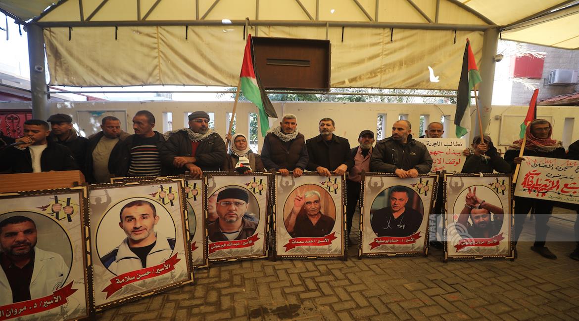 غزة - وقفة أمام مقر الصليب الأحمر في مدينة غزة للمطالبة بالإفراج عن الأسرى من سجون الاحتلال الإسرائيلي
