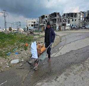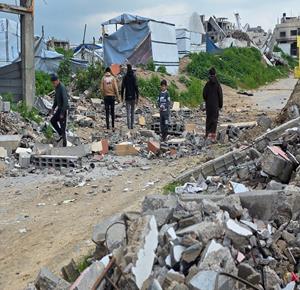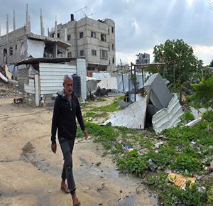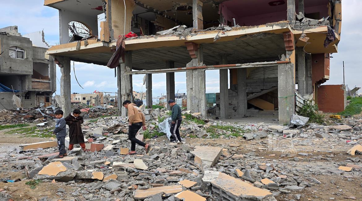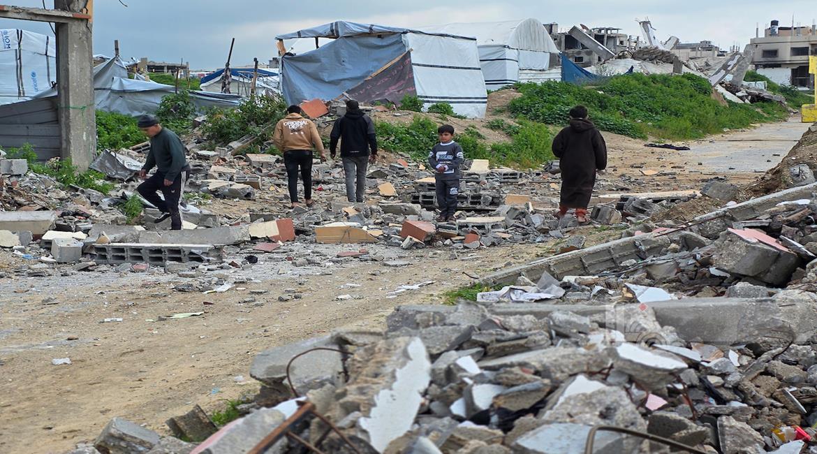 نازحون يواصلون حياتهم اليومية وسط الدمار والبرد القارس في خيام مهترئة في مخيم الزوايدة