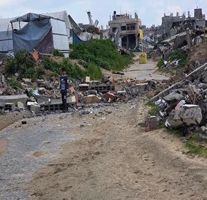 غزة - قوات الاحتلال تقصف منزلا وتطالب السكان بالإخلاء الفوري في منطقة حي الرقب الغربي في بني سهيلا، شرق خان يونس جنوب قطاع غزة