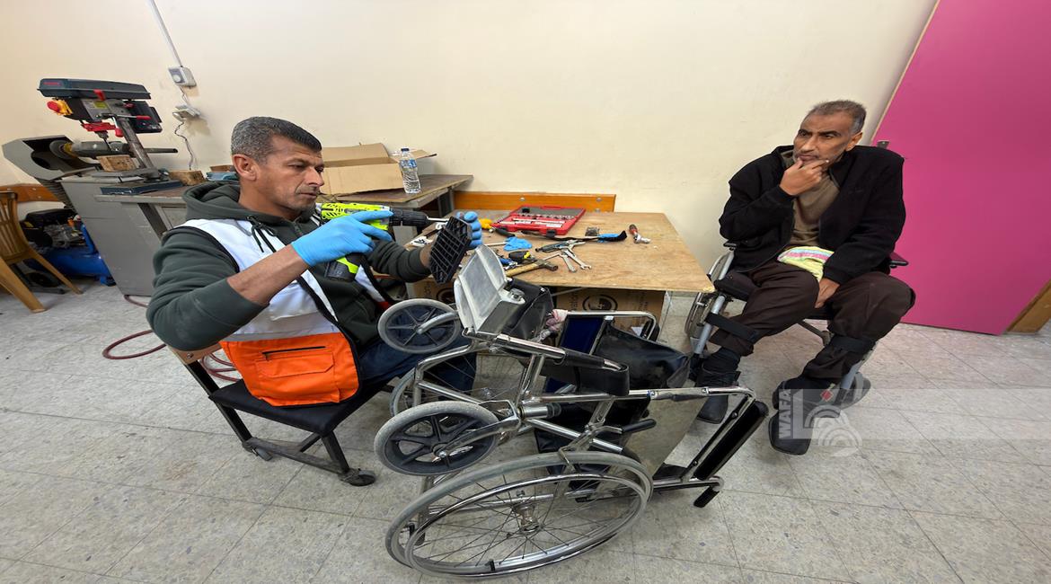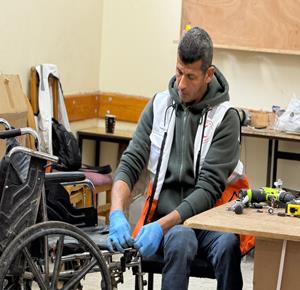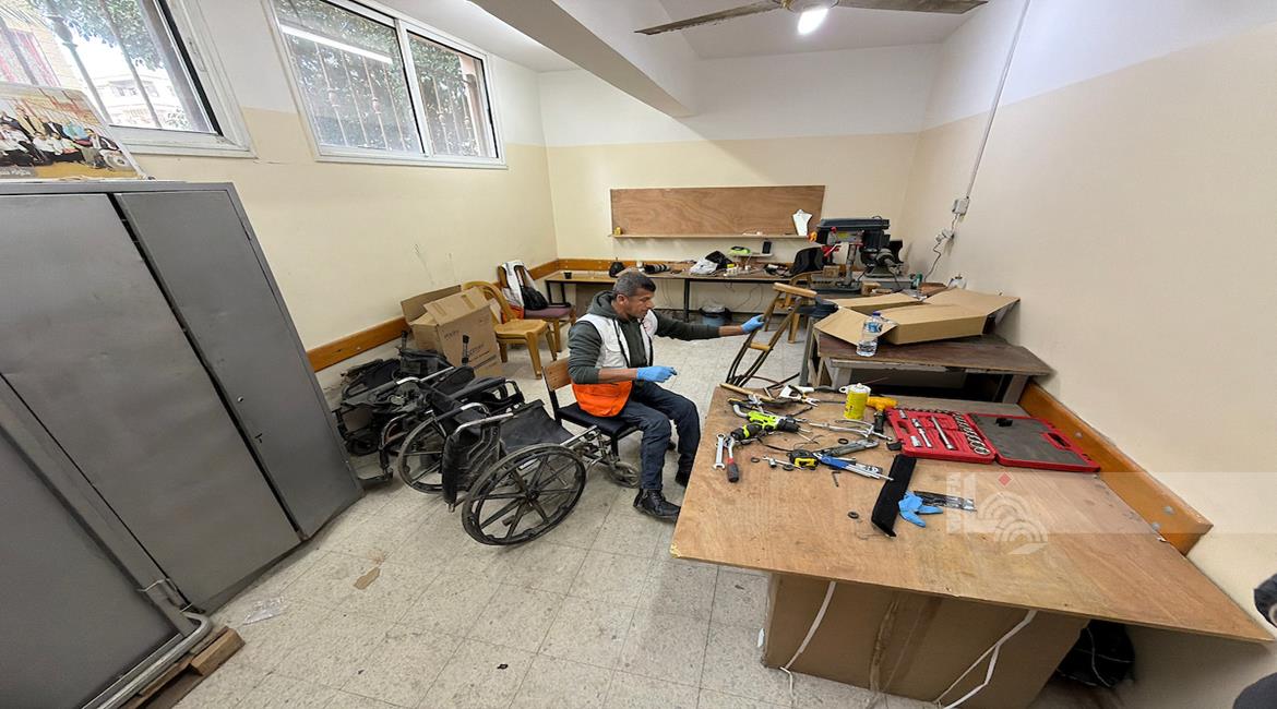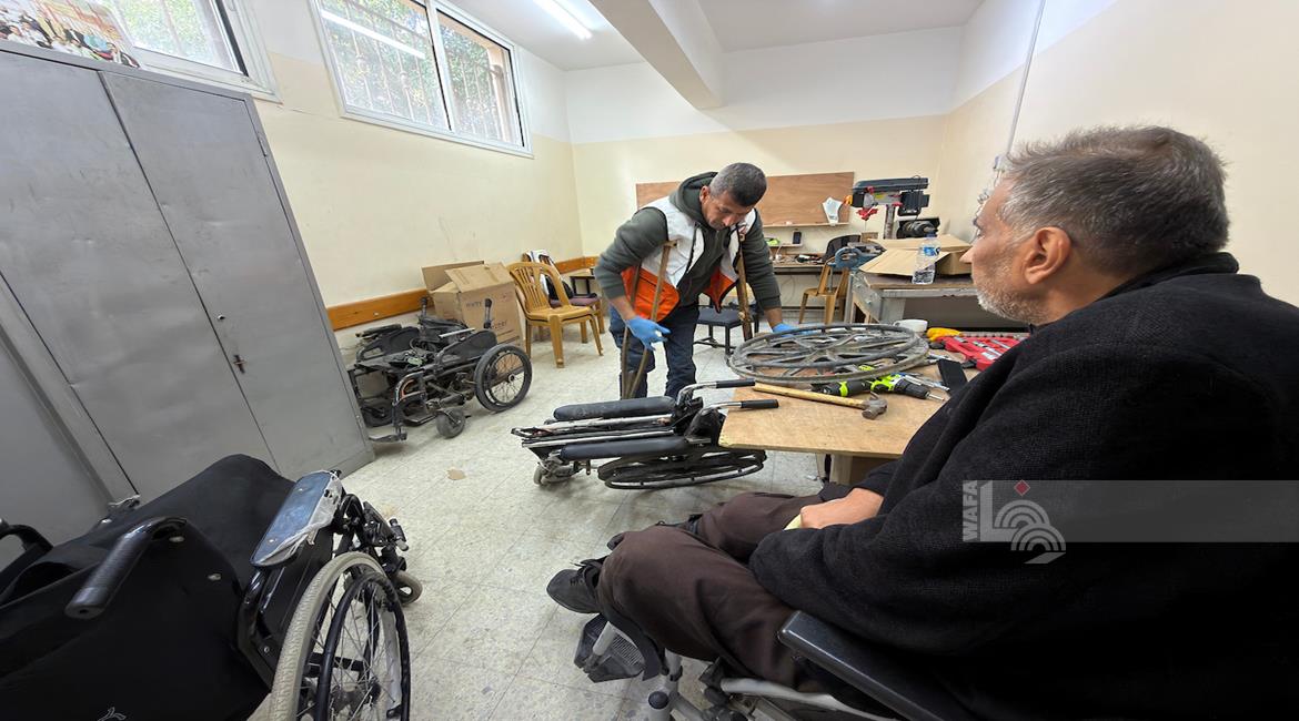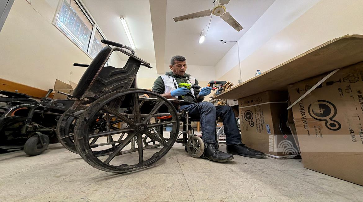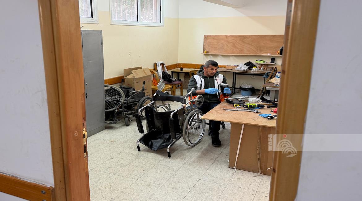 غزة - رمزي الفجم يصلح كراسي متحركة لجرحى الحرب في غزة، متحديا إعاقته الشخصية ونقص المعدات في ظل قيود الاحتلال المفروضة على إدخال المساعدات الطبية