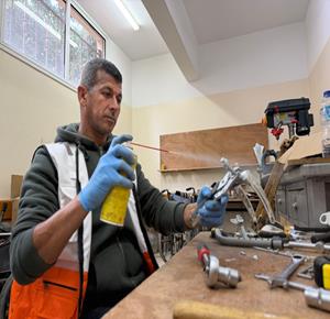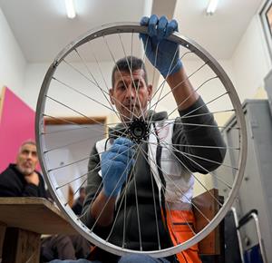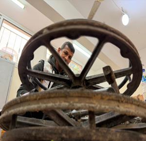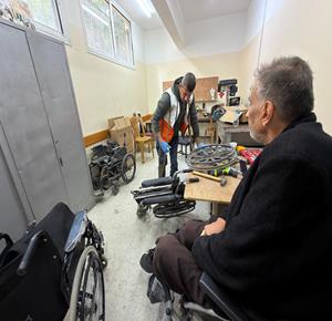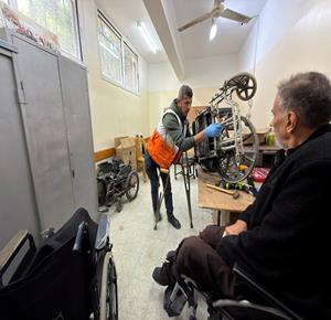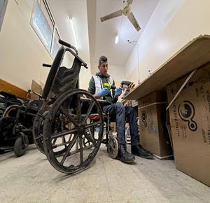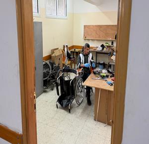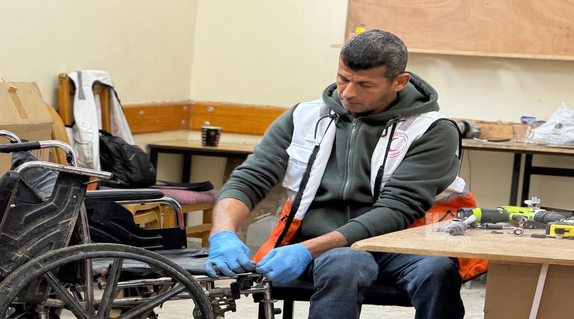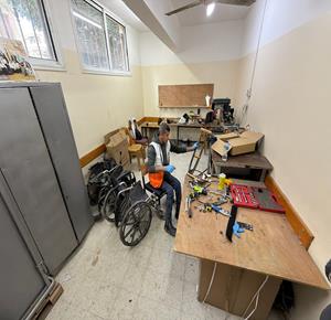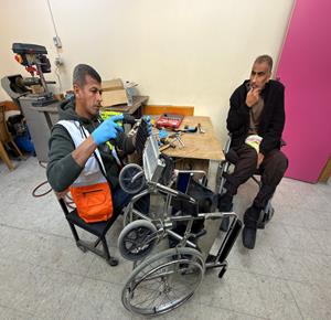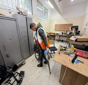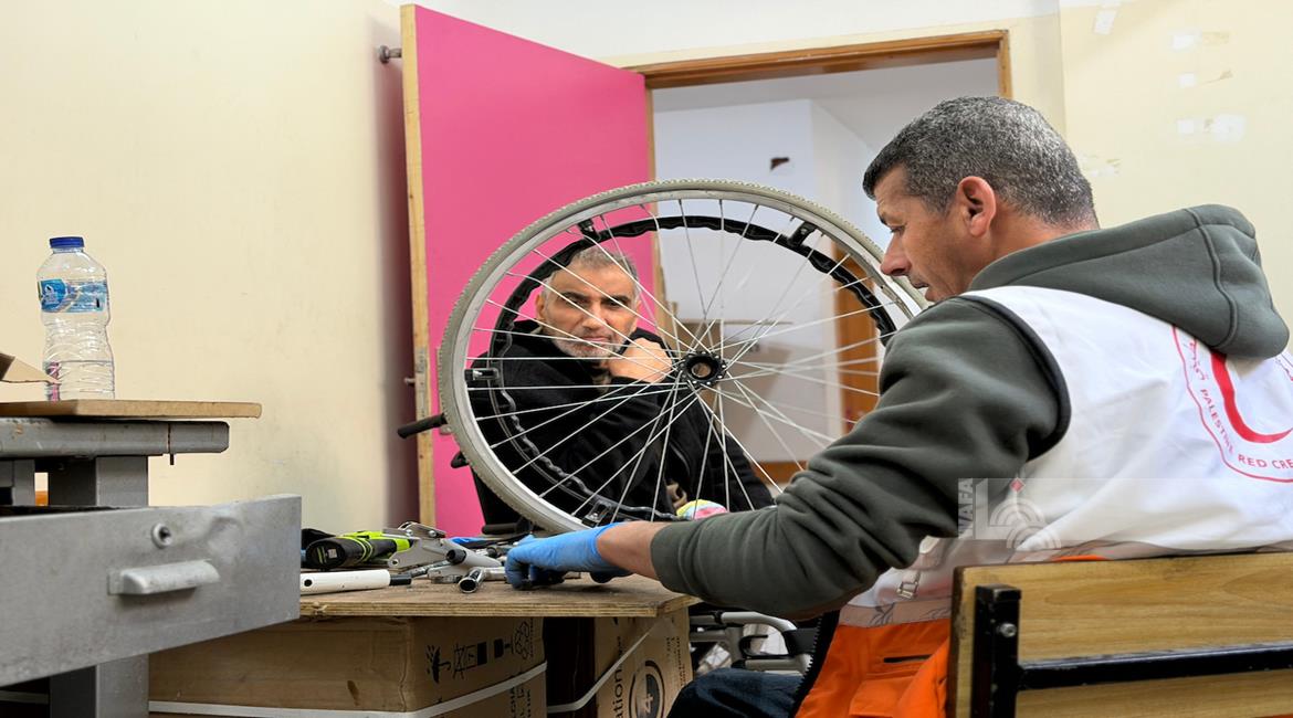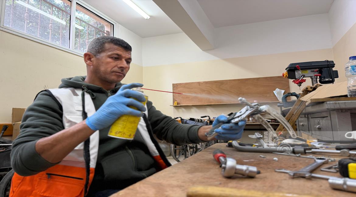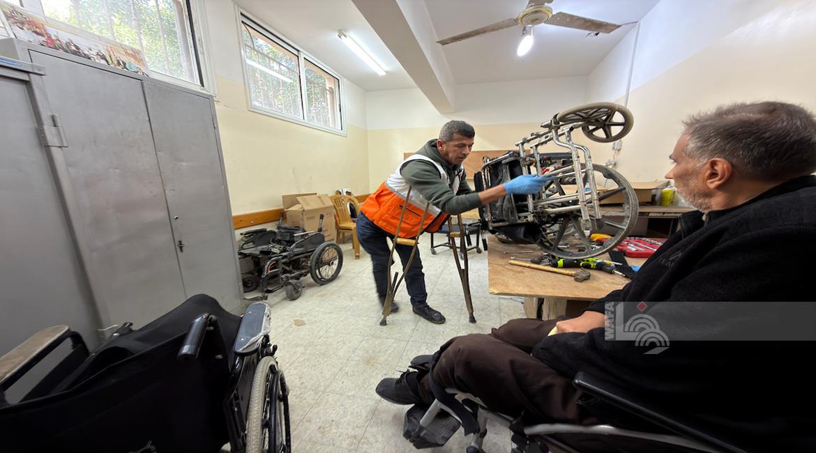 غزة - رمزي الفجم يصلح كراسي متحركة لجرحى الحرب في غزة، متحديا إعاقته الشخصية ونقص المعدات في ظل قيود الاحتلال المفروضة على إدخال المساعدات الطبية