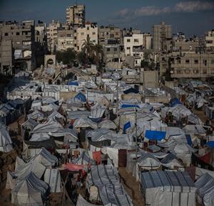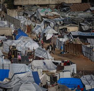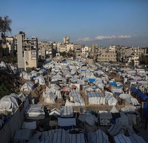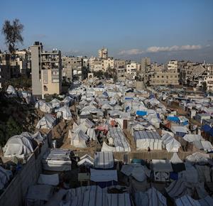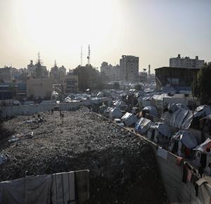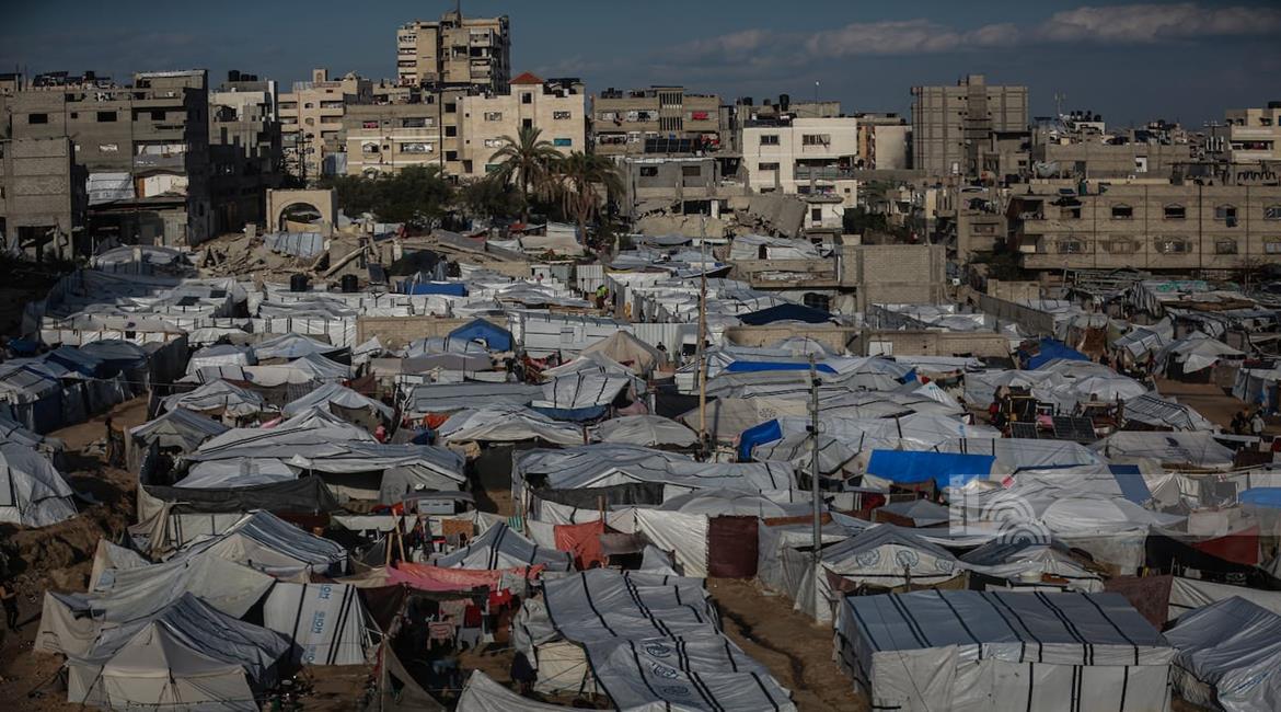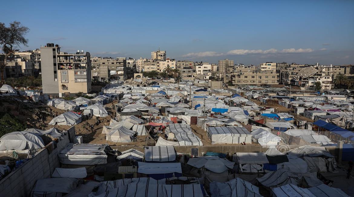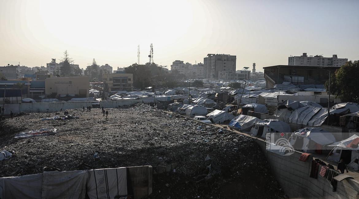 غزة - مشاهد عامة لخيام النازحين المتكدسة بين المباني المدمرة في وسط مدينة غزة