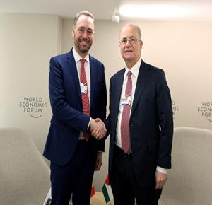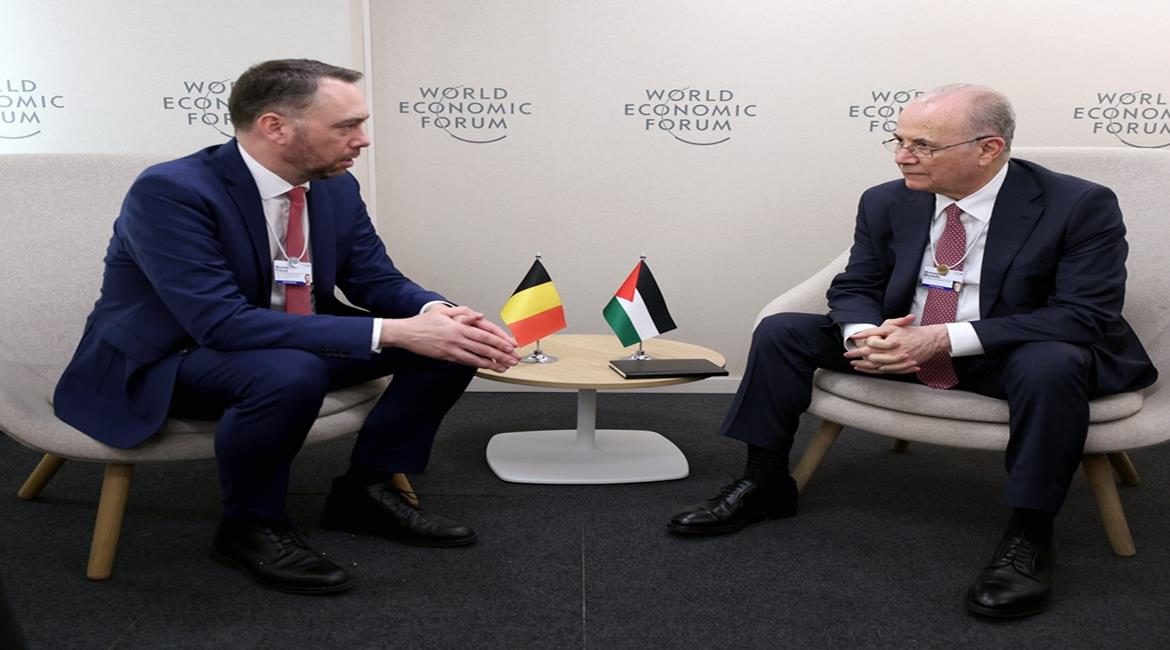 دافوس - رئيس الوزراء محمد مصطفى خلال لقائه نائب رئيس الوزراء، ووزير الخارجية البلجيكي ماكسيم بريفو