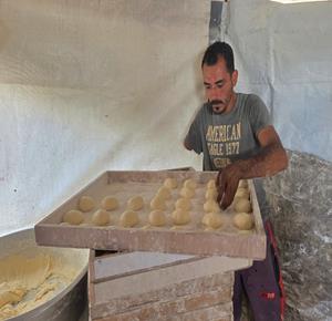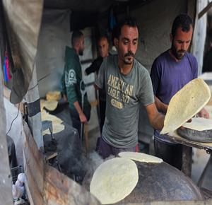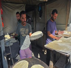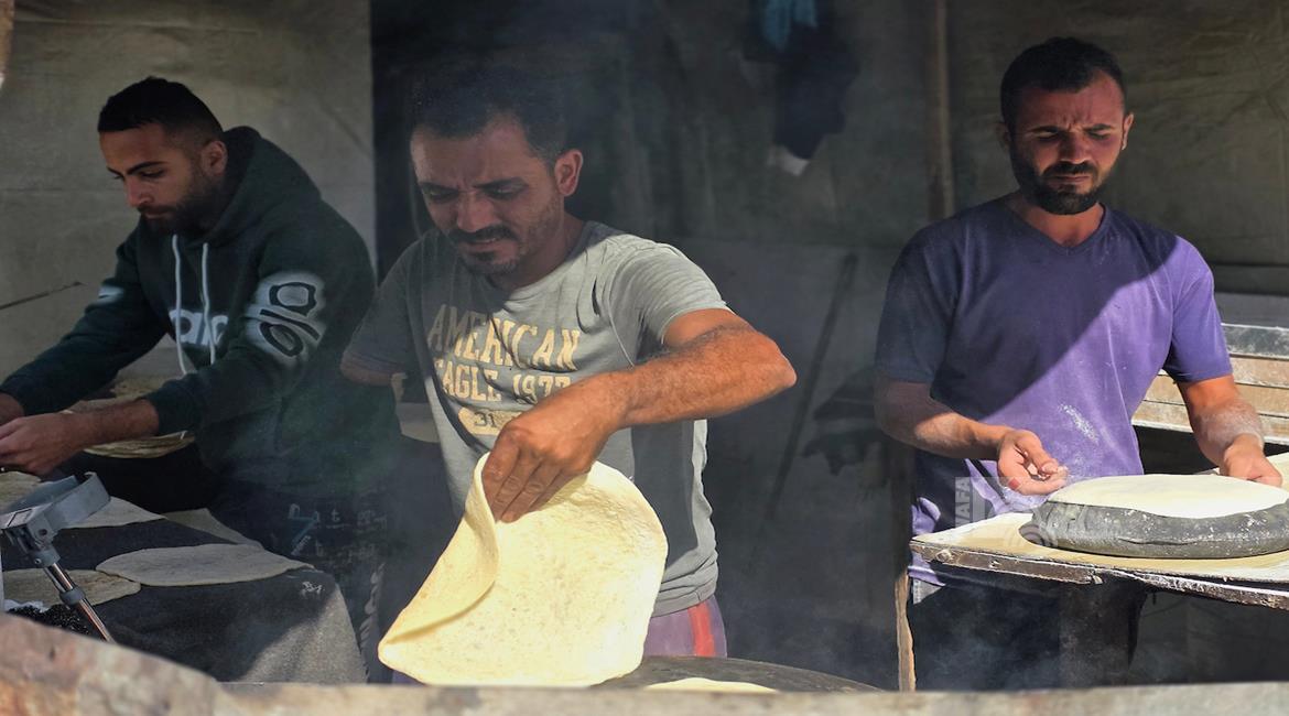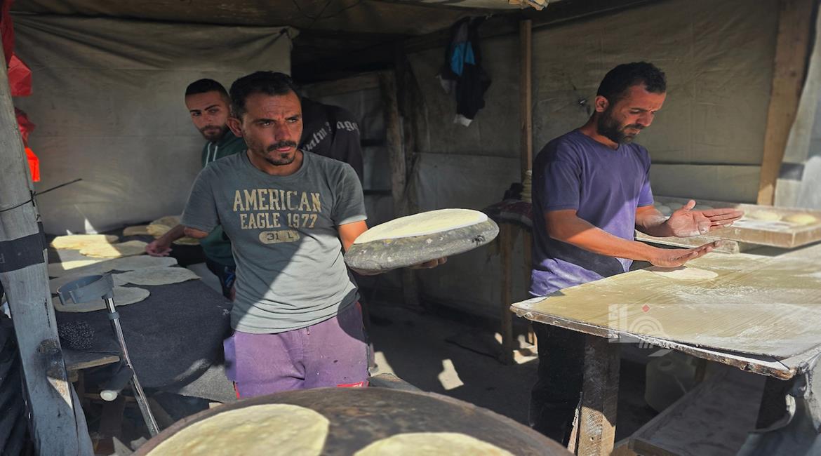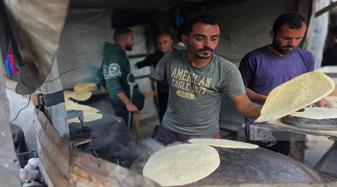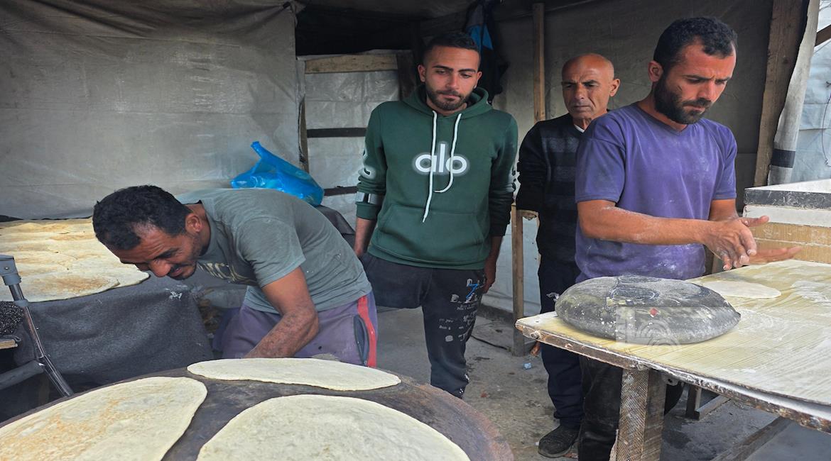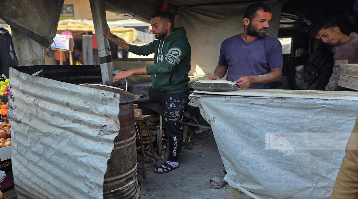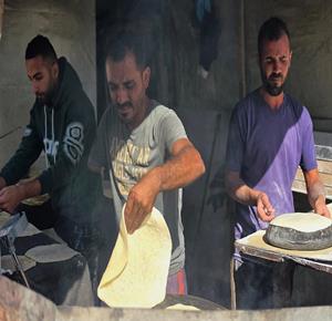 غزة - المواطن محمد قحمان يعيد تشغيل فرن تقليدي وسط الدمار في مدينة حمد غرب خان يونس
