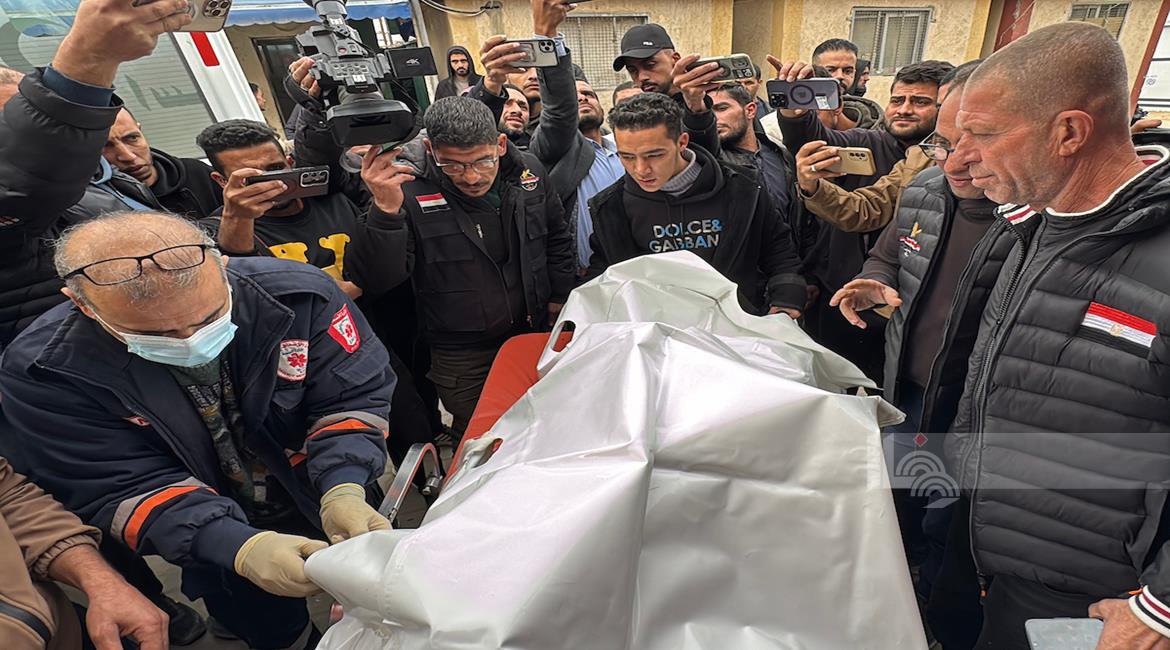 وصول جثماني شهيدين صحفيَّين إلى مستشفى الشفاء بمدينة غزة، جراء استهداف الاحتلال لمركبة تتبع للجنة المصرية في منطقة الزهراء وسط قطاع غزة