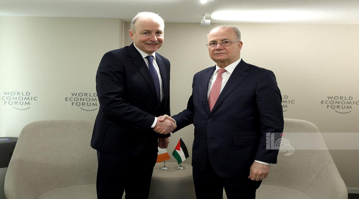دافوس - رئيس الوزراء محمد مصطفى، خلال لقائه نظيره الإيرلندي مايكل مارتن