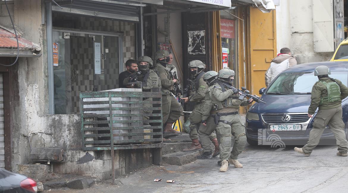 نابلس - قوات الاحتلال الإسرائيلي خلال اقتحامها مخيم العين غرب مدينة نابلس