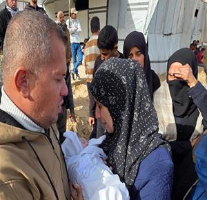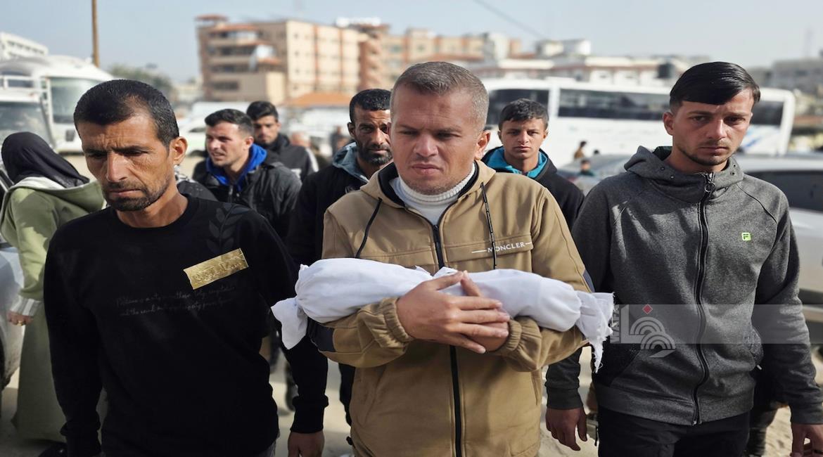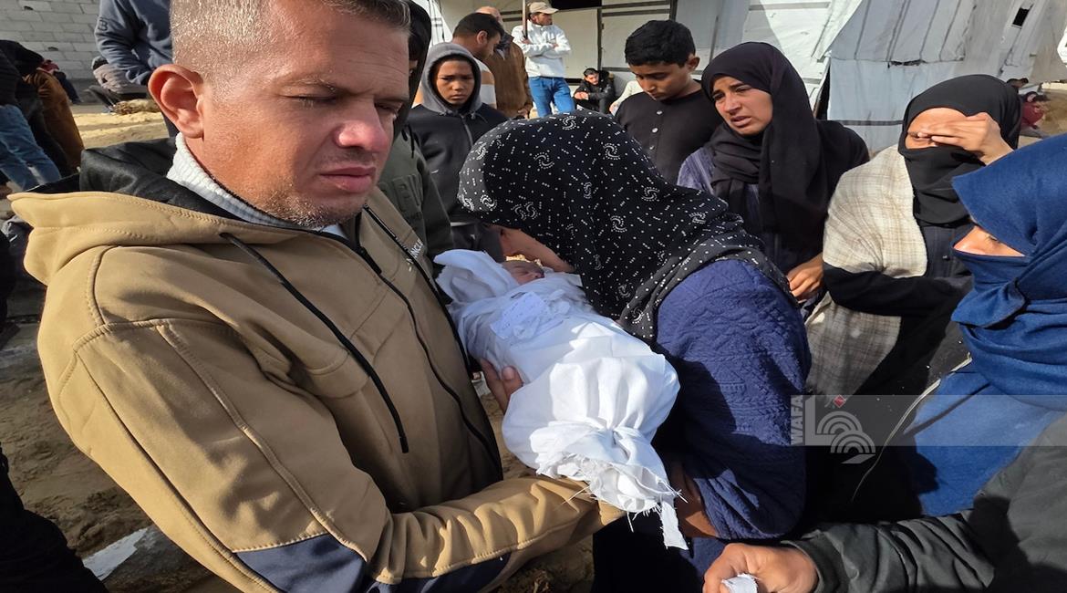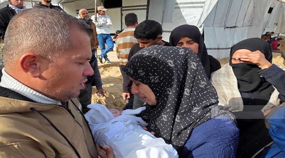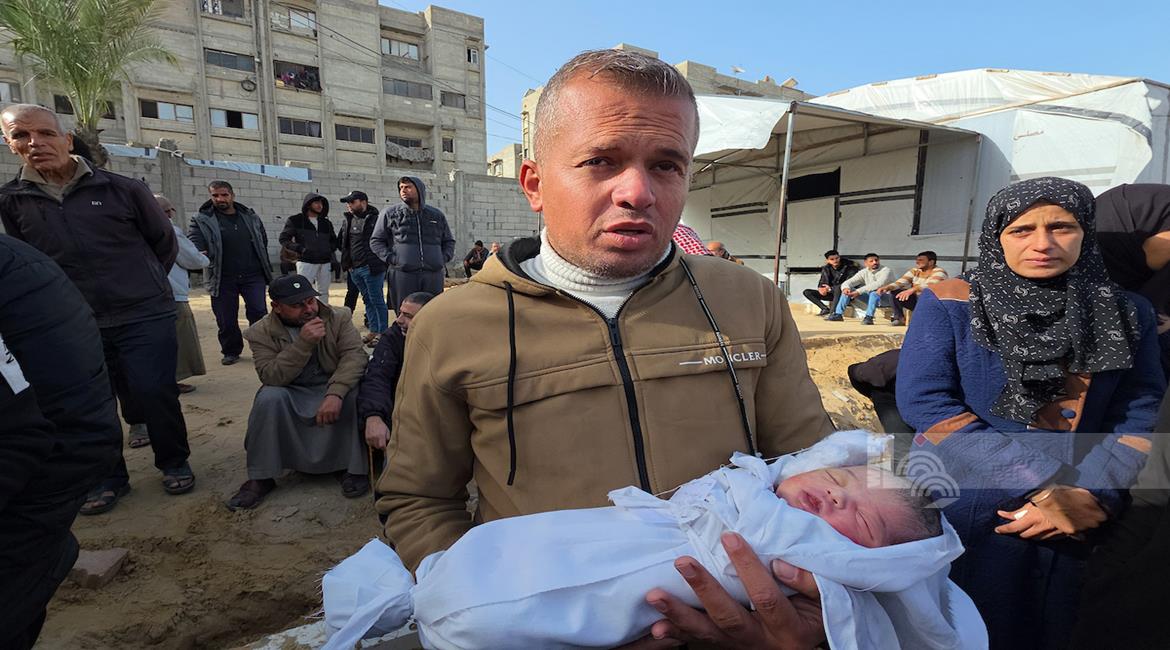 غزة - تشييع الرضيعة سجود عليان بعد سبعة أيام من ولادتها في مستشفى ناصر بخان يونس قضت نتيجة حرمانها من السفر لتلقي العلاج في الخارج