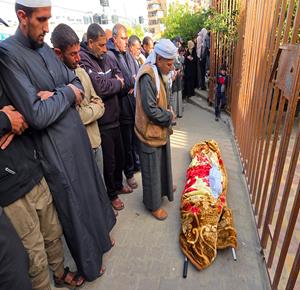 وداع وتشييع شهيد في مستسفى الشفاء بمدينة غزة ارتقى بنيران الاحتلال الإسرائيلي