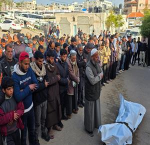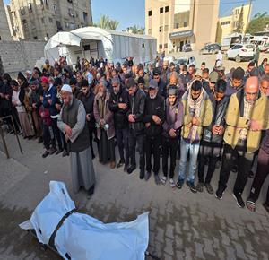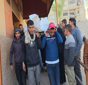غزة - تشييع جثمان الشهيد نور أبو ستة في مجمع ناصر الطبي بعد ارتقائه برصاص الجيش الإسرائيلي جنوب خان يونس
