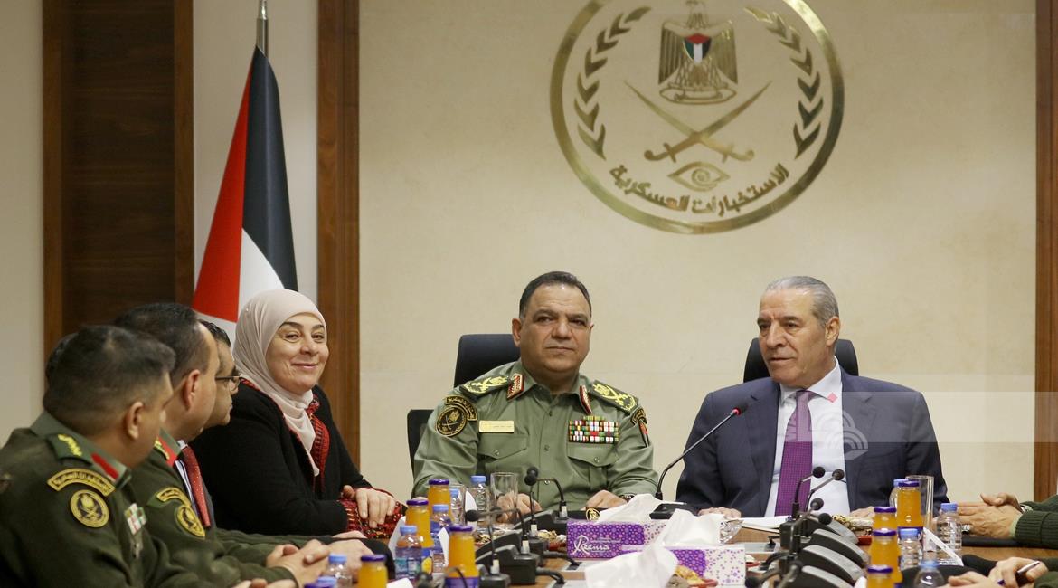 رام الله - نائب رئيس دولة فلسطين، حسين الشيخ يزور مقر قيادة جهاز الاستخبارات العسكرية في مدينة رام الله.