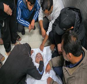 - وصول جثمان الشهيد منار المدهون إلى مستشفى ناصر بعد استشهاده برصاص قوات الاحتلال الإسرائيلي في خان يونس جنوب قطاع غزة