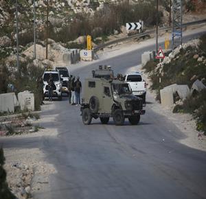 قوات الاحتلال مصحوبة بمدرعات من نوع "إيتان" خلال اقتحامها بلدة علار شمال مدينة طولكرم