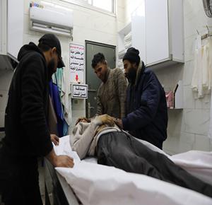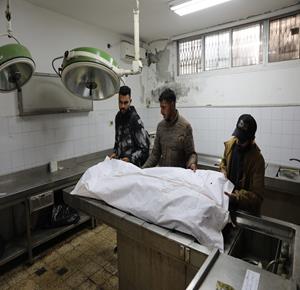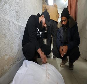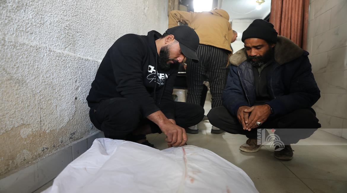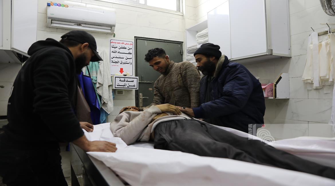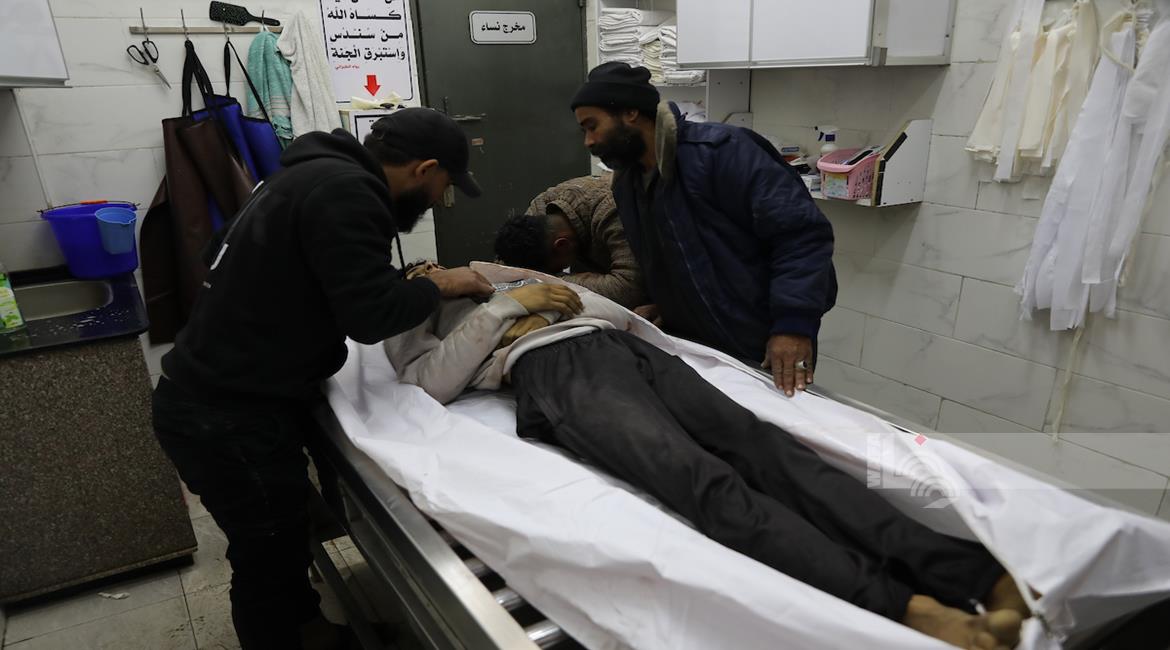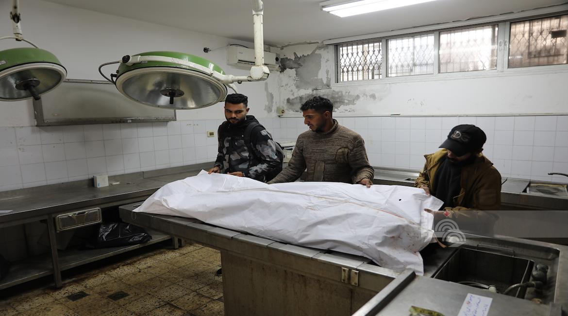 غزة - وداع جثمان الشهيد يوسف الريفي في مستشفى الشفاء بمدينة غزة، والذي ارتقى جراء استهداف إسرائيلي في حي التفاح شرق مدينة غزة