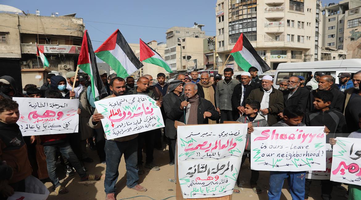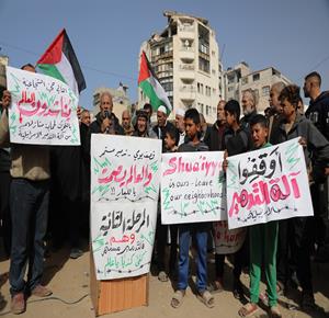 غزة - وقفة احتجاجية في غزة رفضاً للهجمات الإسرائيلية المستمرة ومنع عودة المواطنين إلى منازلهم