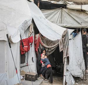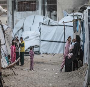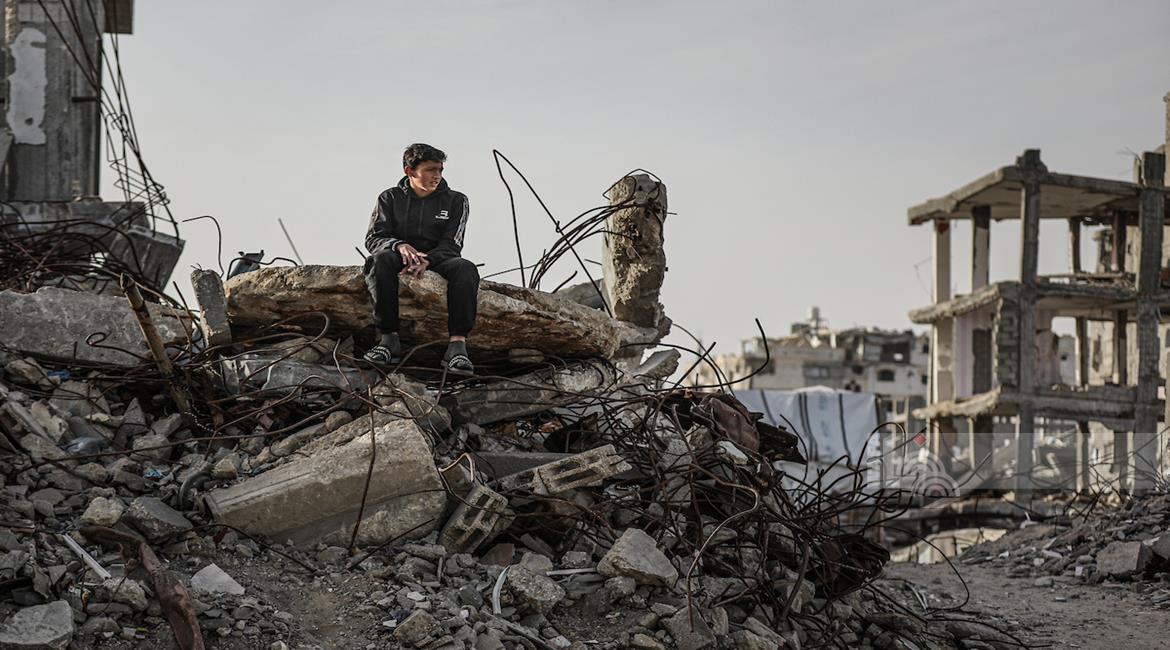 غزة - نازحون بينهم أطفال يعيشون داخل خيام مهترئة بين أنقاض المنازل المدمرة بخان يونس في ظل ظروف معيشية قاسية ونقص حاد في الخدمات الأساسية