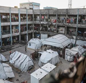 غزة - نازحون يكافحون لمواصلة حياتهم داخل مدرسة تابعة لوكالة الأونروا تحولت لمركز إيواء في خان يونس وسط ظروف معيشية صعبة ونقص حاد في مقومات الحياة الأساسية
