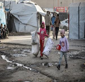 نازحون بينهم أطفال يعيشون داخل خيام مهترئة بين أنقاض المنازل المدمرة بخان يونس في ظل ظروف معيشية قاسية ونقص حاد في الخدمات الأساسية