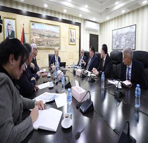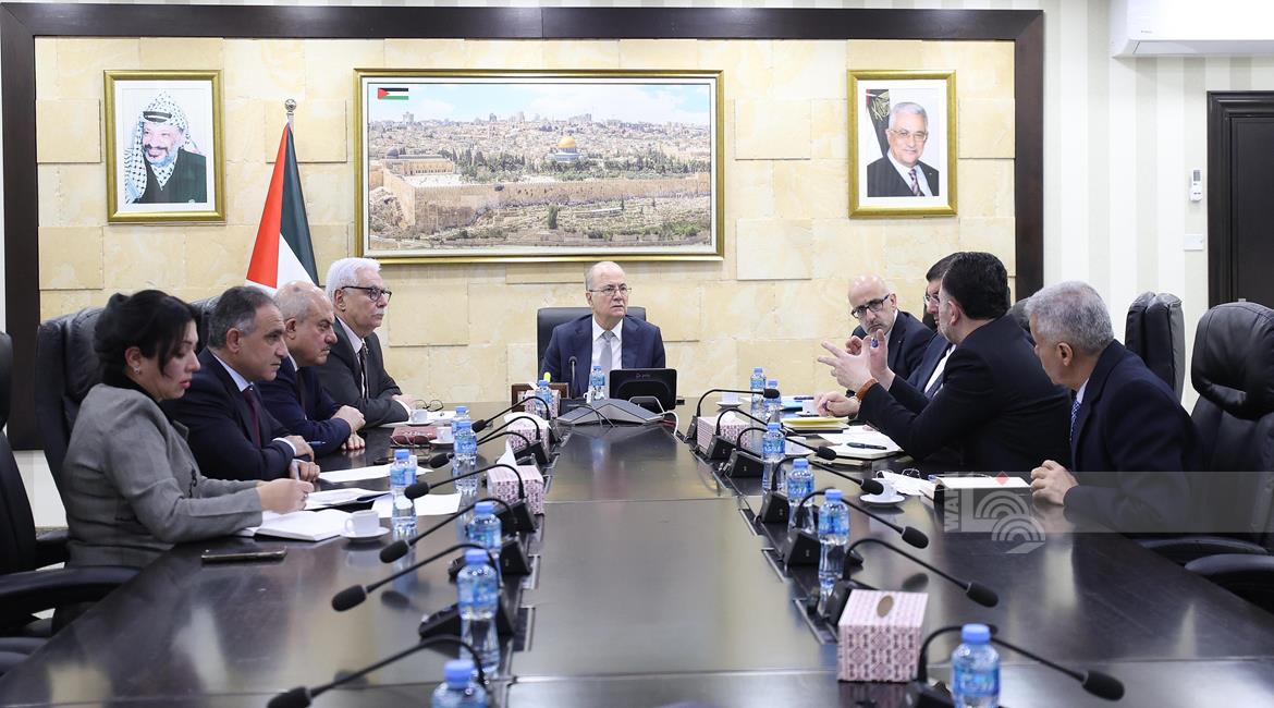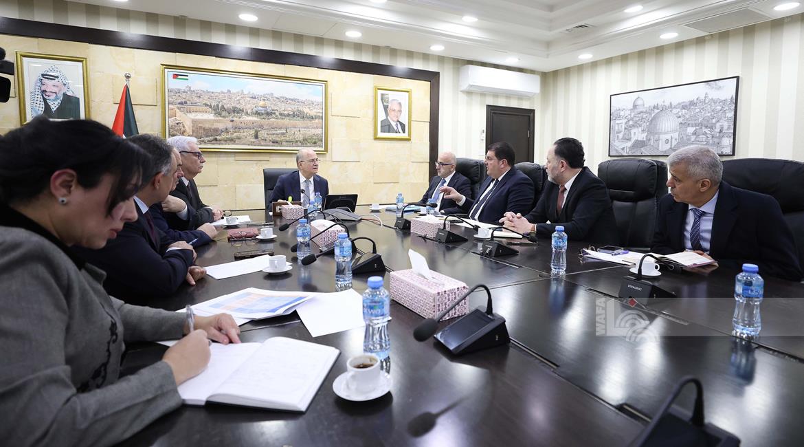 رام الله - رئيس الوزراء محمد مصطفى، خلال لقائه عدد من الوزراء ورؤساء الهيئات الحكومية