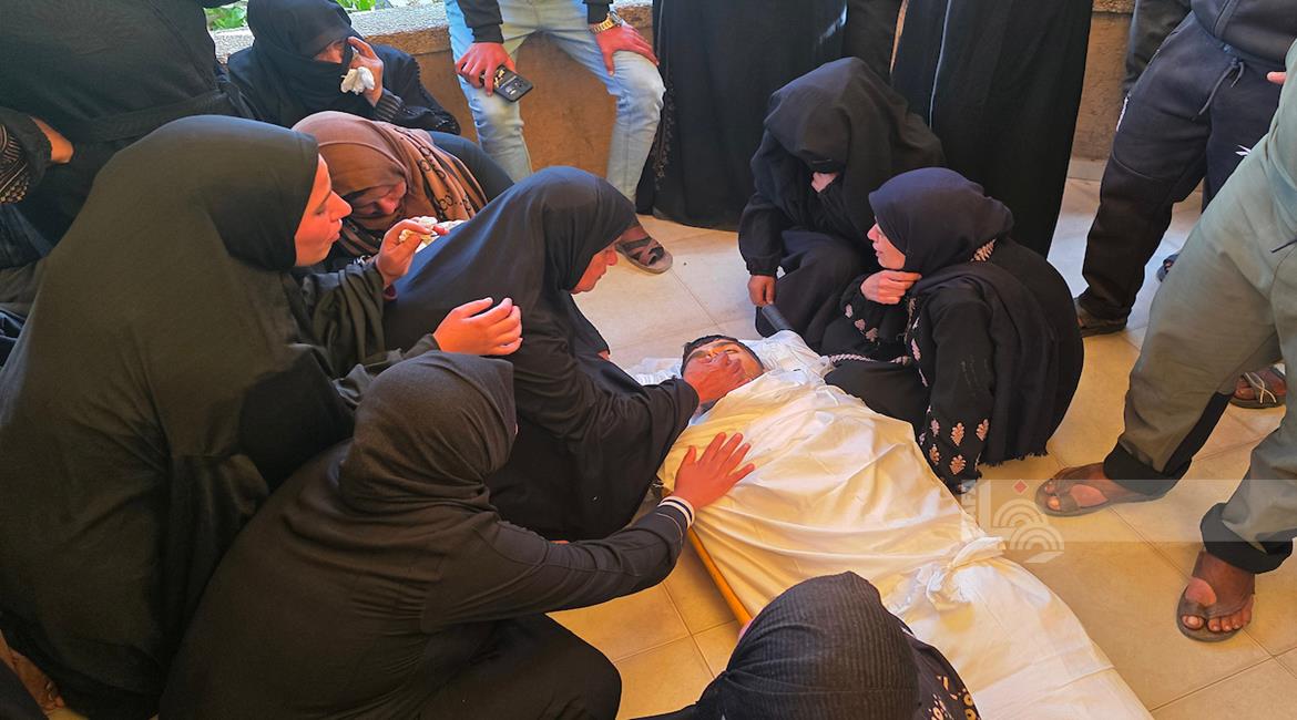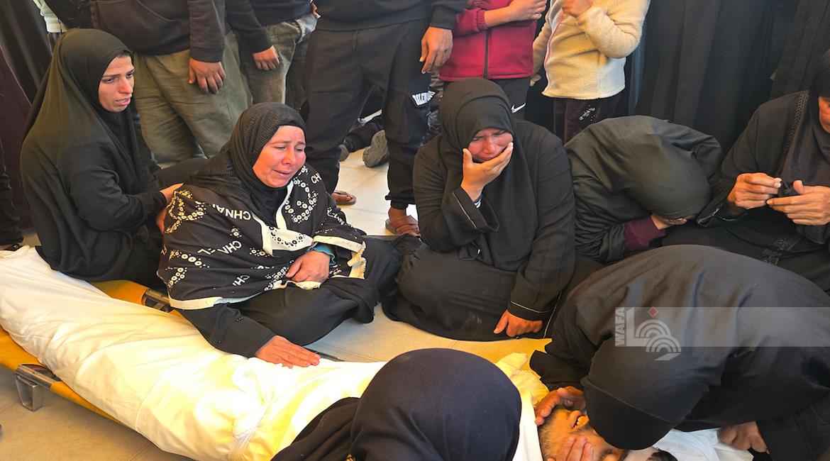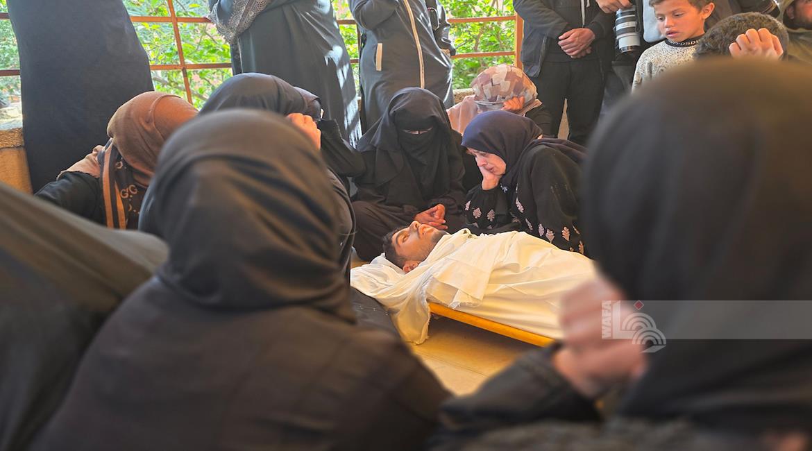 غزة - مواطنون يودعون جثمان الشهيد محمد أسامة عمران (19 عامًا) في مجمع ناصر الطبي، بعد استهدافه برصاص الاحتلال وسط مدينة خانيونس جنوب قطاع غزة