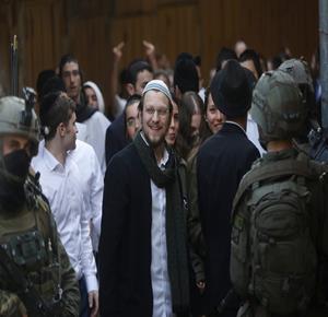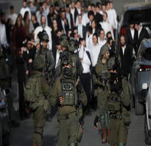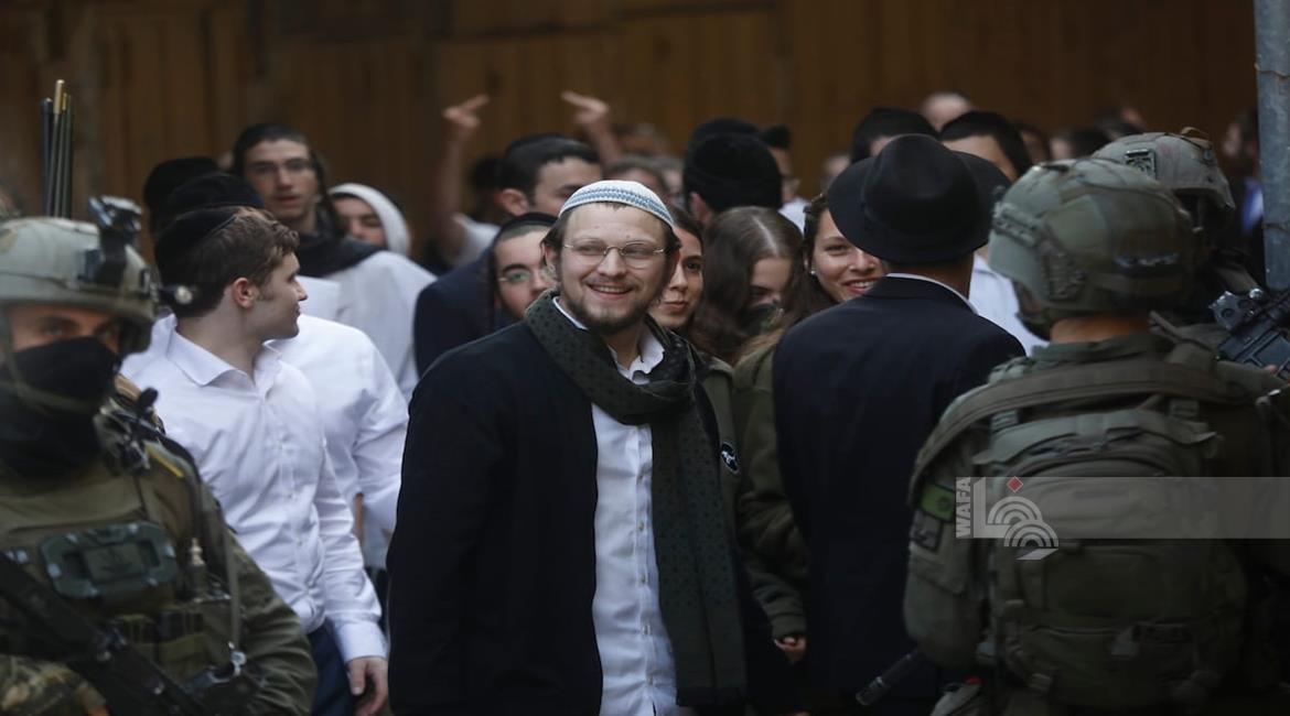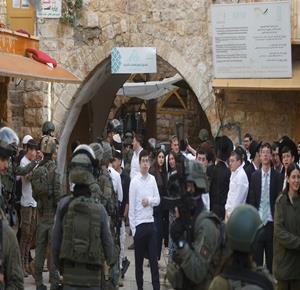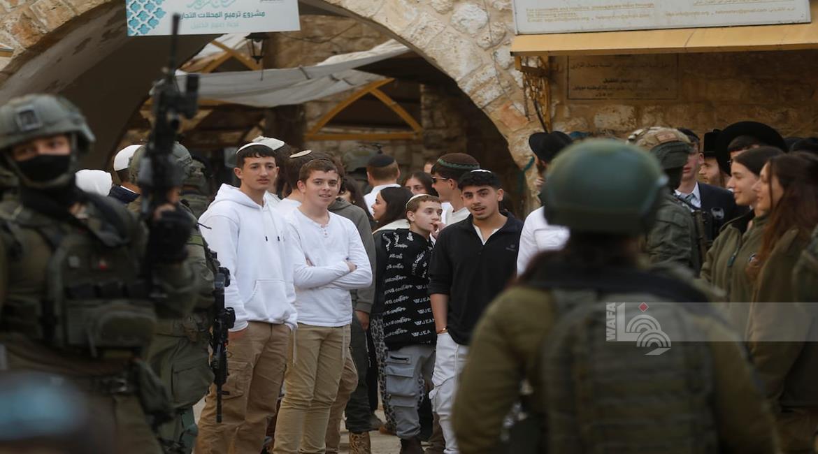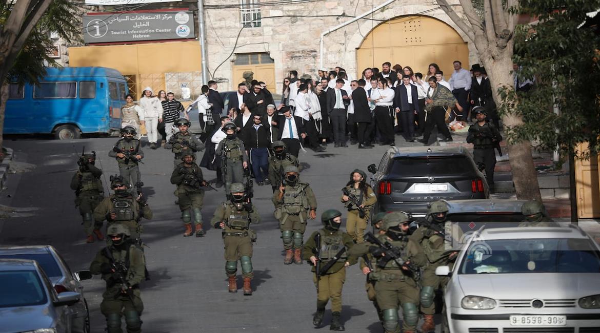 الخليل - مستعمرون بحماية جيش الاحتلال يقتحمون البلدة القديمة في الخليل