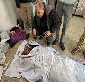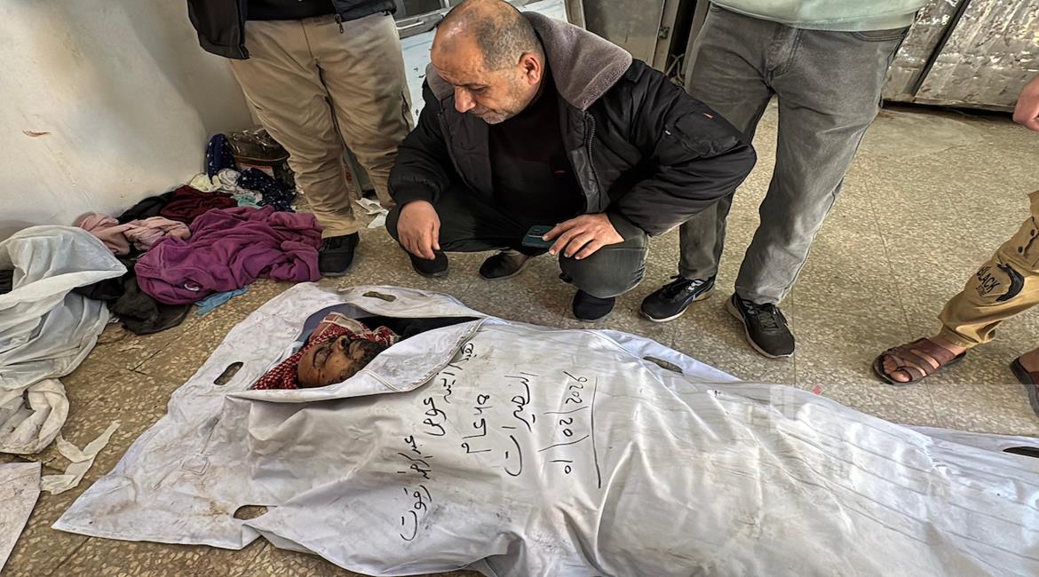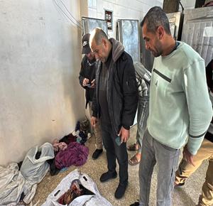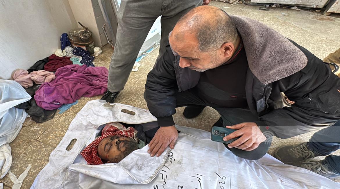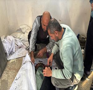 غزة - وصول جثمان شهيد إلى مستشفى شهداء الأقصى بعد غارة إسرائيلية قرب وادي غزة وسط قطاع غزة