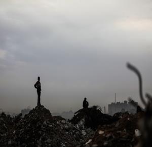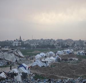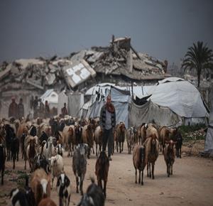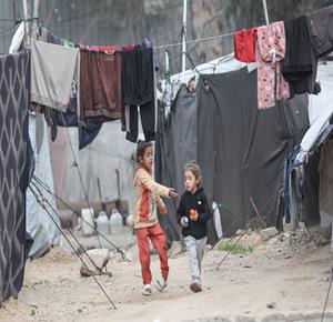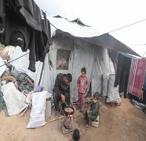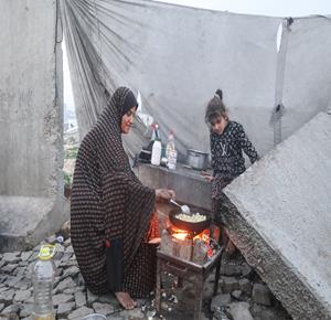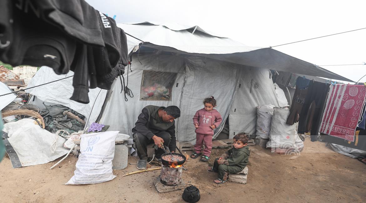 غزة - نازحون يعيشون ظروفا صعبة في خيام مؤقتة بين الانقاض بمخيم النصيرات وسط قطاع غزة