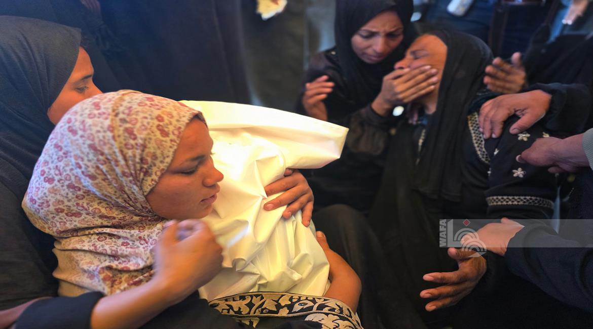 غزة - وداع وتشييع الطفل إياد أحمد الربيعية (3 أعوام) والذي ارتقى جراء قصف الزوارق الحربية الإسرائيلية لخيام النازحين جنوب غرب خان يونس