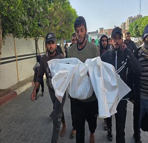 عائلة أبو حدايد يتلقون العلاج بمستشفى ناصر بعد استهداف خيمة نزوحهم في خان يونس وارتقاء 7 شهداء