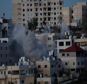 قوات الاحتلال تهدم منزلا من ثلاثة طوابق يعود للمواطن بسام فتحي الجعافرة في ترقوميا غرب الخليل
