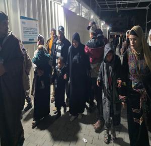 غزة - مواطنون أثناء وصلهم قطاع غزة عبر معبر رفح بعد إعادة فتحه بشكل محدود