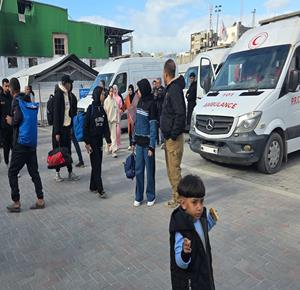 اللجنة الدولية للصليب الأحمر تنقل 9 أسرى بينهم إمرأة أفرجت عنهم سلطات الاحتلال إلى مستشفى شهداء الأقصى في دير البلح وسط قطاع غزة.