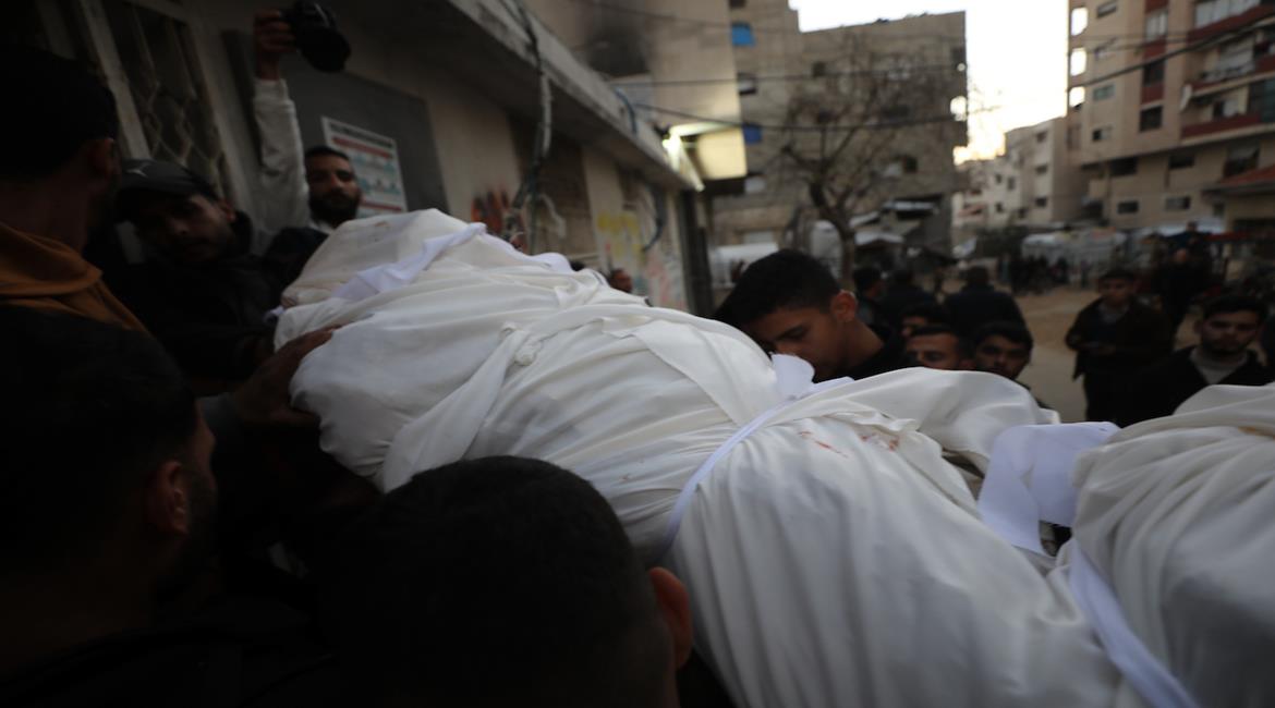 وصول جثمان شهيد إلى مستشفى الشفاء، إثر استهداف الاحتلال لمجموعة من المواطنين في مخيم الشاطئ غرب مدينة غزة