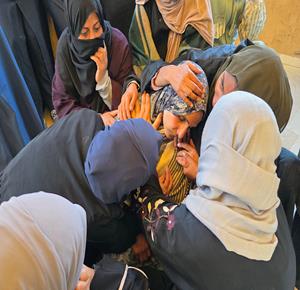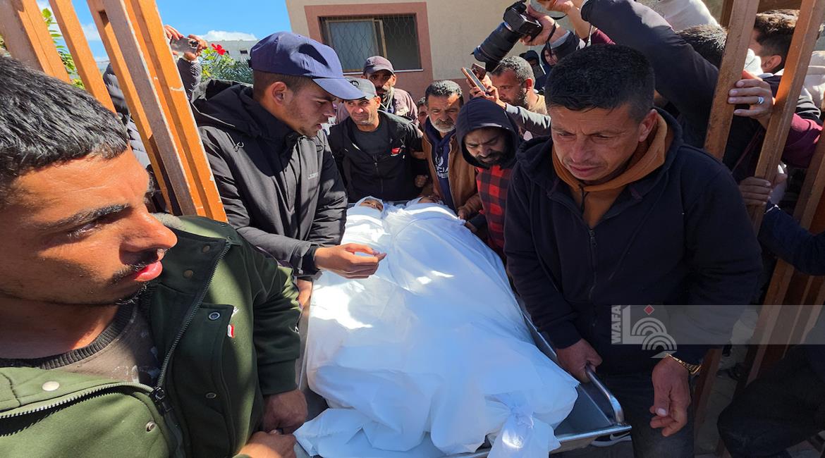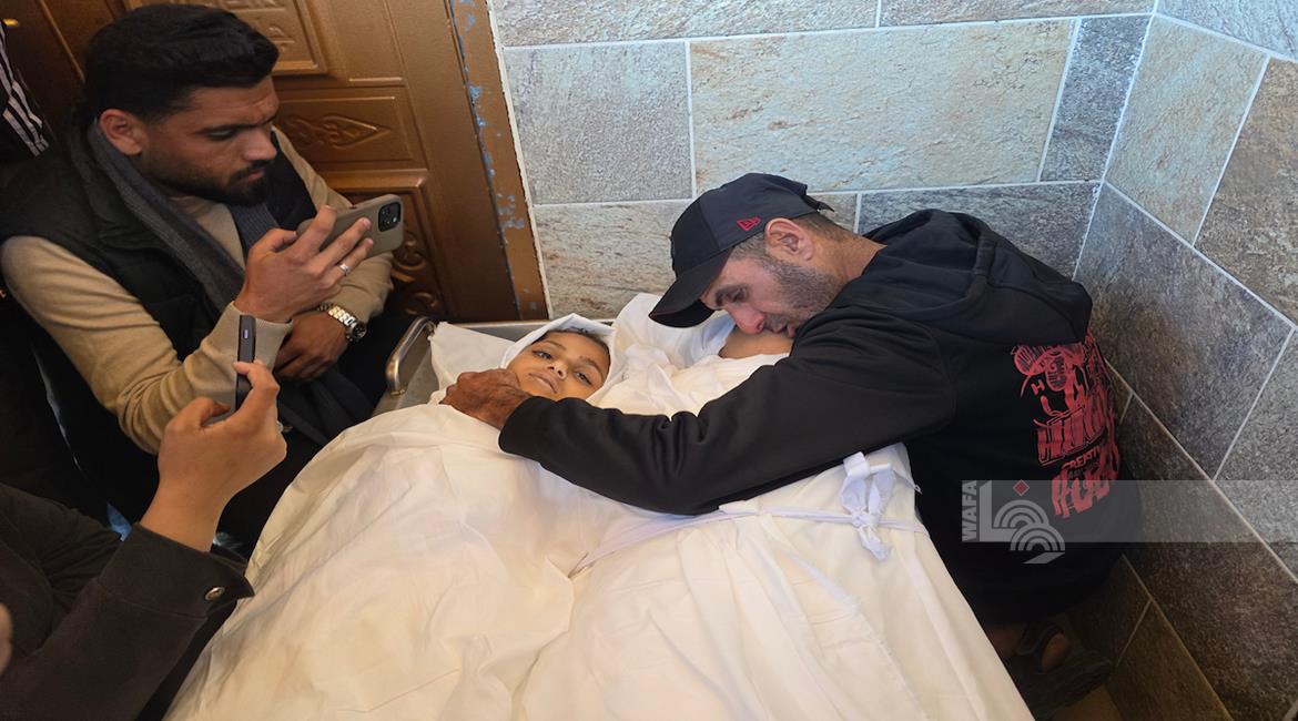 غزة - تشييع جثامين ثلاثة شهداء "طفلتان ومسعف"، في مستشفى ناصر بخان يونس، بعد ارتقائهم جرّاء غارة إسرائيلية استهدفت مخيما للنازحين في منطقة المواصي جنوب قطاع غزة