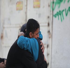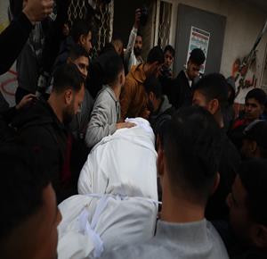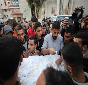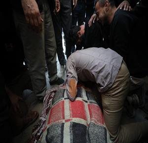 غزة - وصول جثمان شهيد إلى مستشفى الشفاء، إثر استهداف الاحتلال لمجموعة من المواطنين في مخيم الشاطئ غرب مدينة غزة