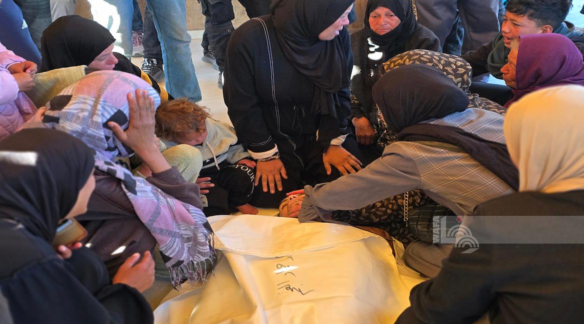 تشييع جثامين ثلاثة شهداء "طفلتان ومسعف"، في مستشفى ناصر بخان يونس، بعد ارتقائهم جرّاء غارة إسرائيلية استهدفت مخيما للنازحين في منطقة المواصي جنوب قطاع غزة
