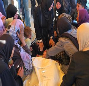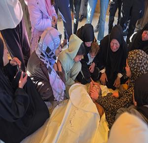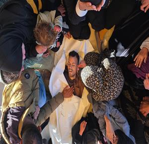 وصول جثمان شهيد إلى مستشفى الشفاء، إثر استهداف الاحتلال لمجموعة من المواطنين في مخيم الشاطئ غرب مدينة غزة
