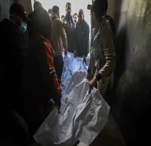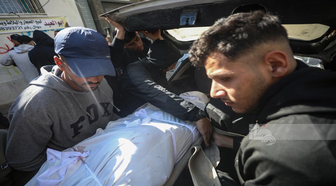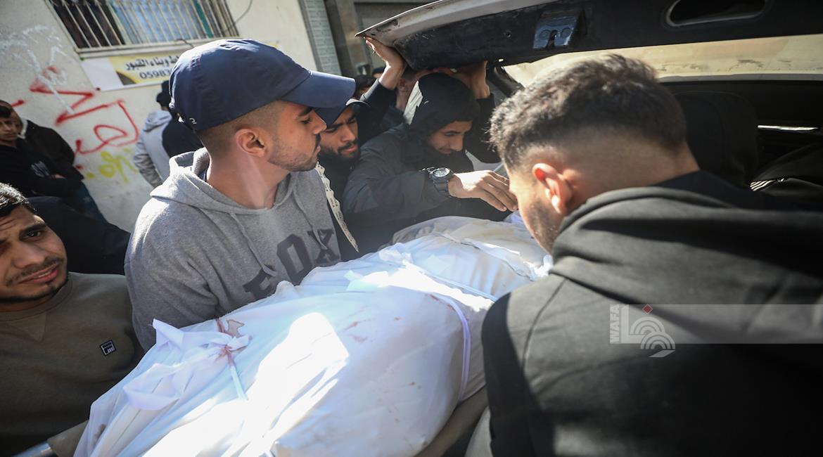 وصول جثمان شهيد إلى مستشفى الشفاء، إثر استهداف الاحتلال لمجموعة من المواطنين في مخيم الشاطئ غرب مدينة غزة