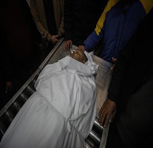 وداع جثمان الشهيد بهاء حماد الفجم (28 عاما) في مستشفى ناصر والذي استشهد برصاص جيش الاحتلال قرب خيمته شرق خان يونس جنوبي قطاع غزة
