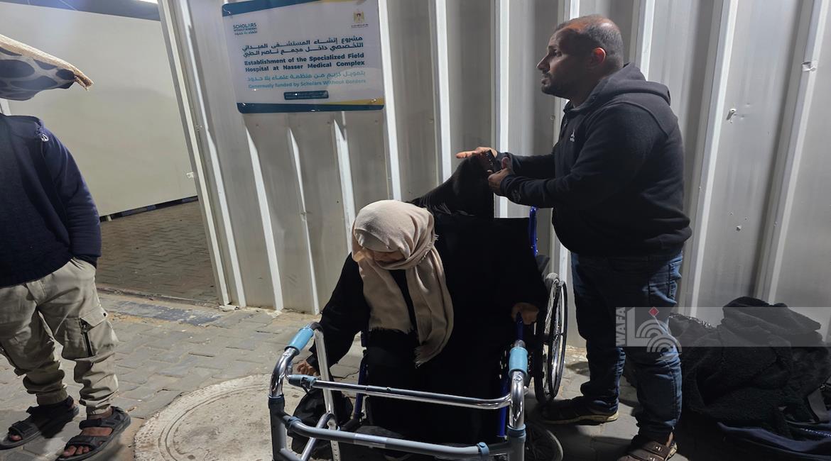 الدفعة الرابعة من مرضى قطاع غزة تغادر من مقر جمعية الهلال الأحمر الفلسطيني في مدينة خان يونس متوجهة إلى معبر رفح البري تمهيدا لسفرهم إلى خارج القطاع لتلقي العلاج