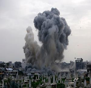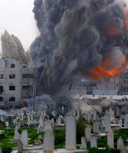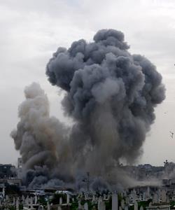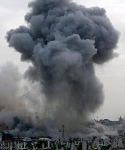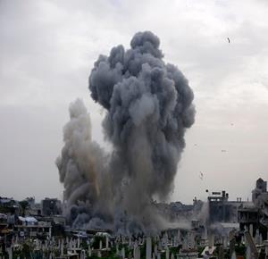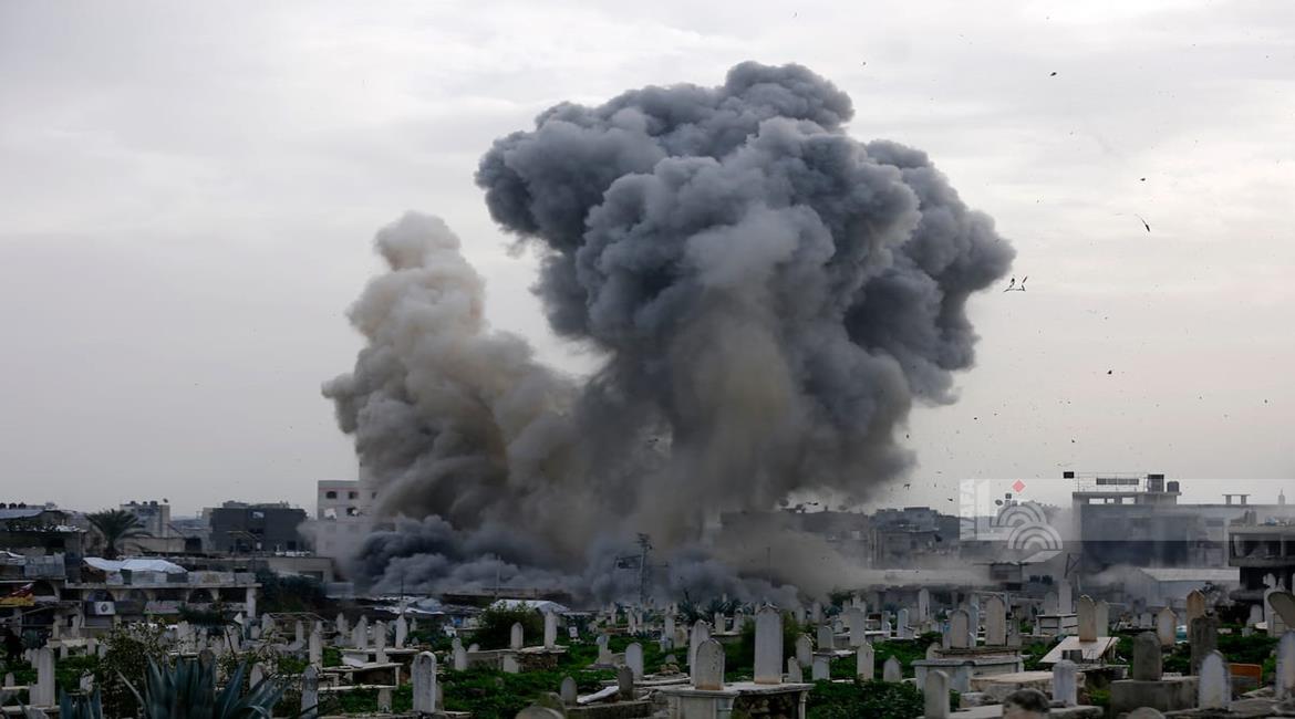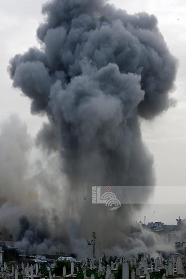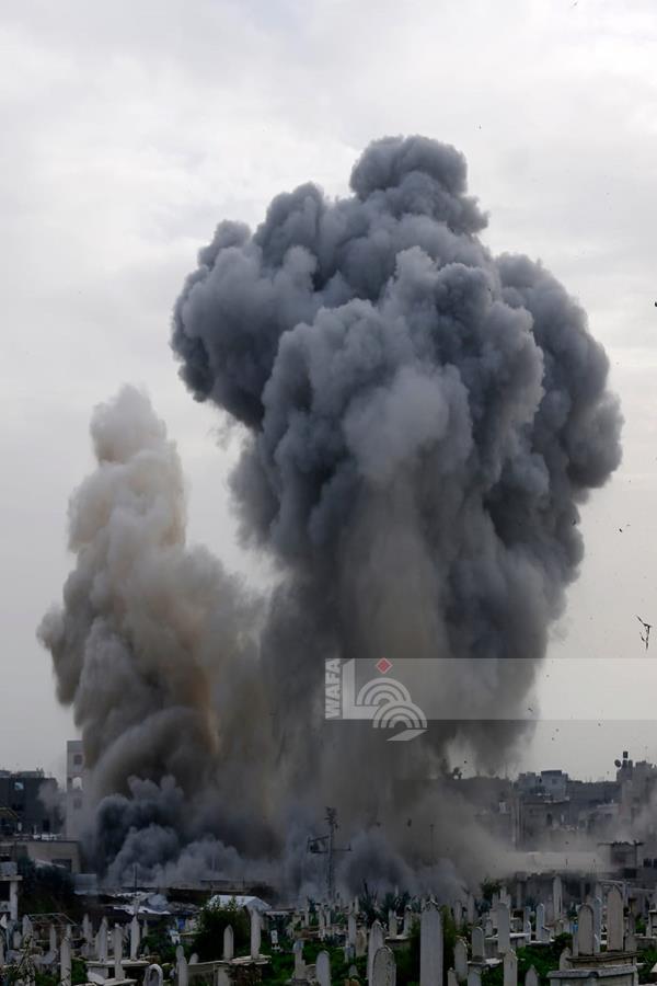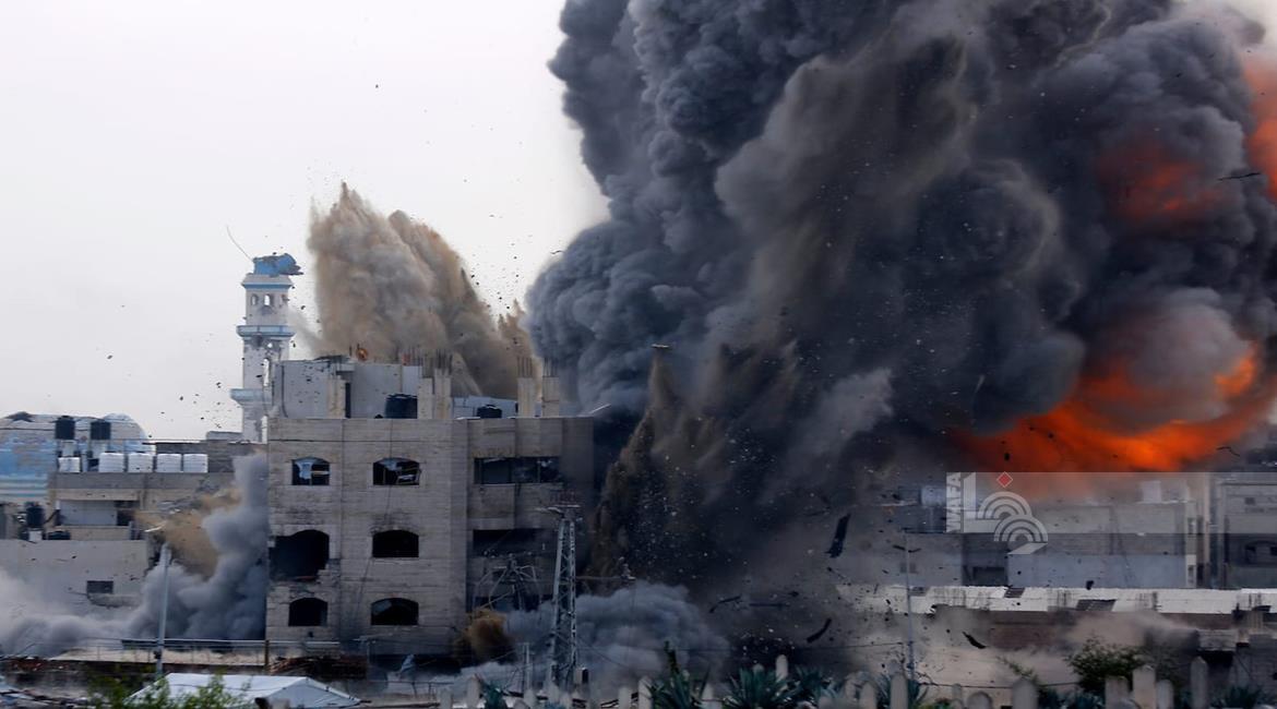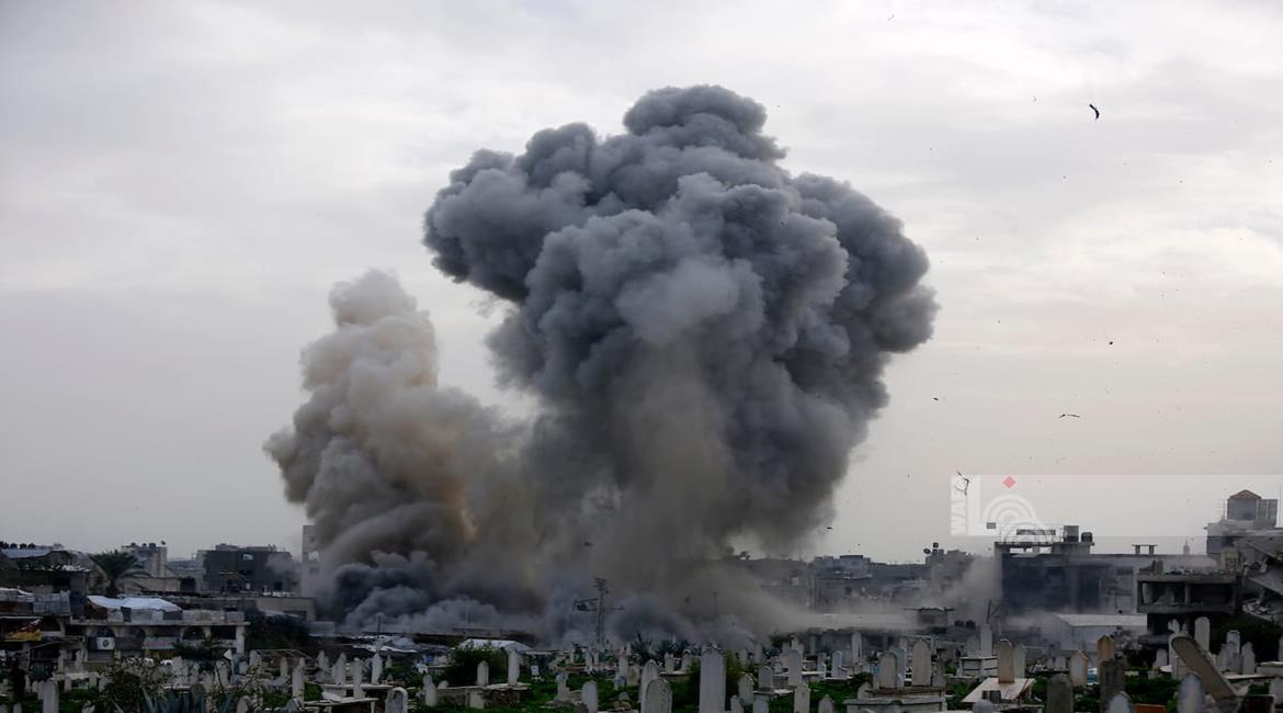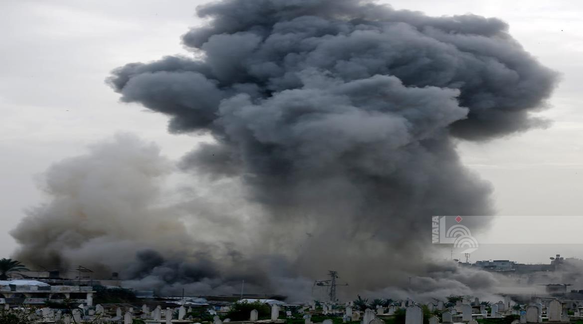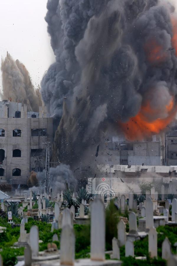 غزة - طائرات الاحتلال الإسرائيلي تقصف مبنى سكنيا من ثلاثة طوابق في حي الزيتون بمدينة غزة