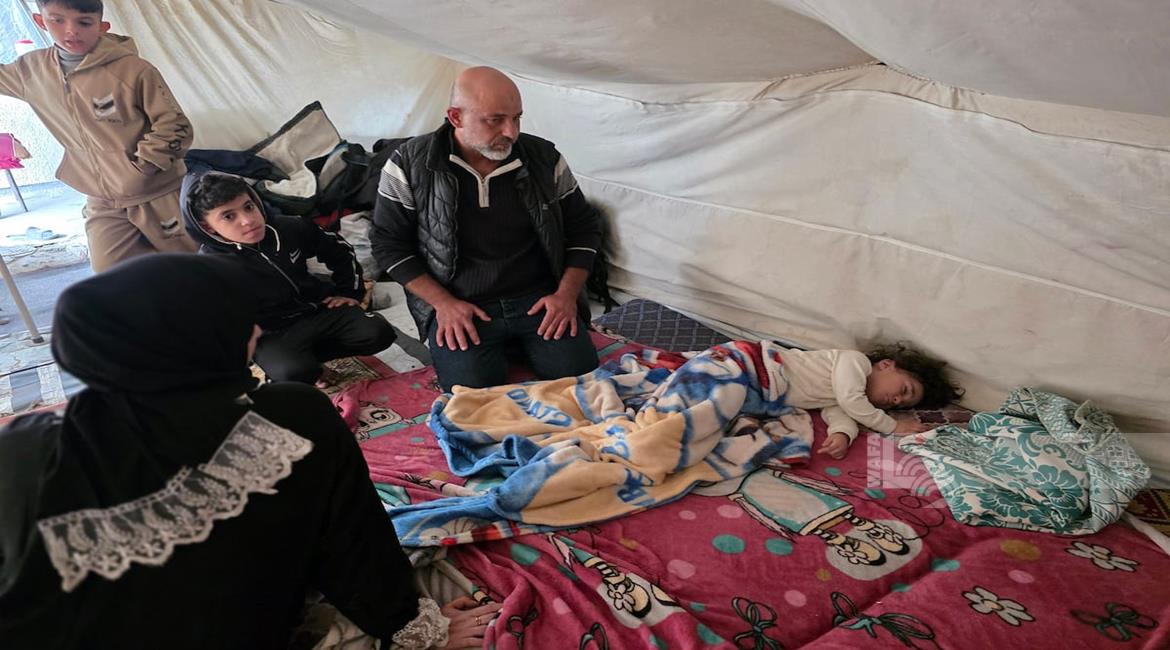 غزة - عائلة يوسف أبو طلحة المكونة من 8 أفراد تعيش ظروفاً صعبة بخيمة في خان يونس بعد العودة من مصر إلى قطاع غزة عبر معبر رفح